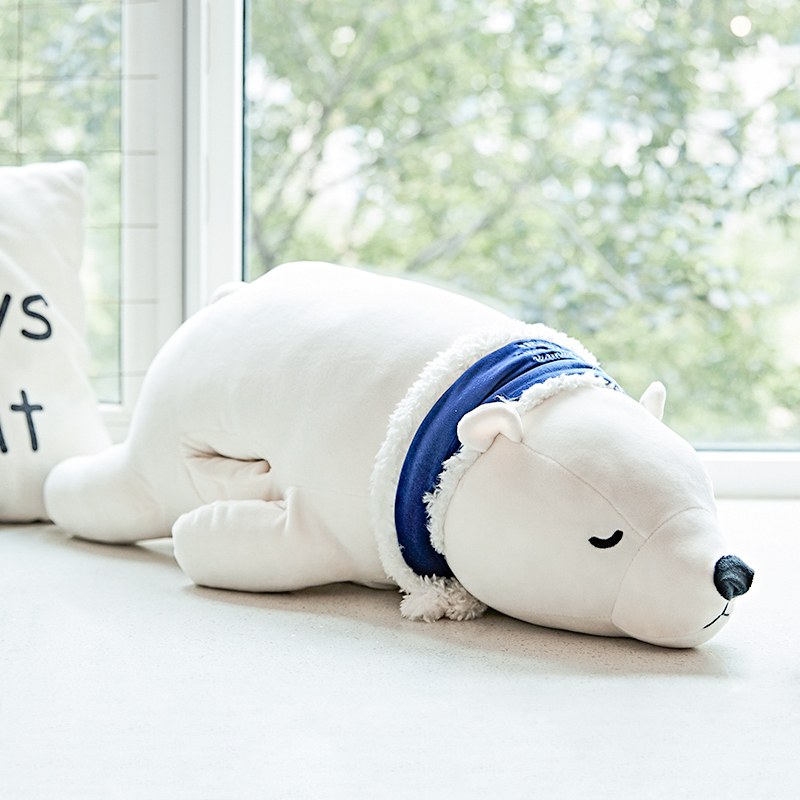 日本LIVHEART北极熊睡觉抱枕暖手毛绒玩具玩偶趴趴公仔娃娃礼物女