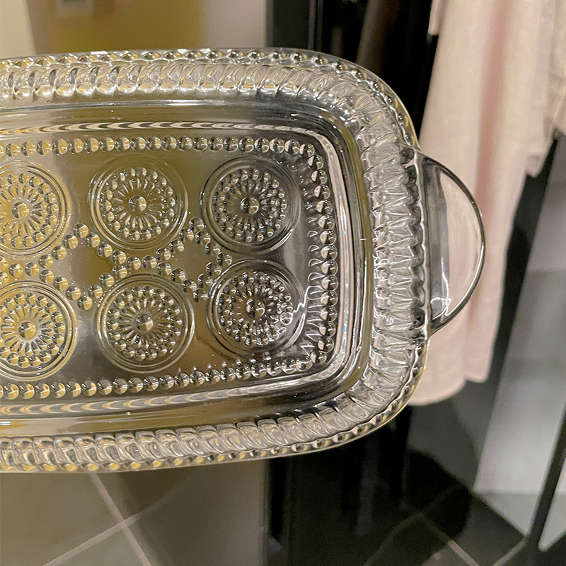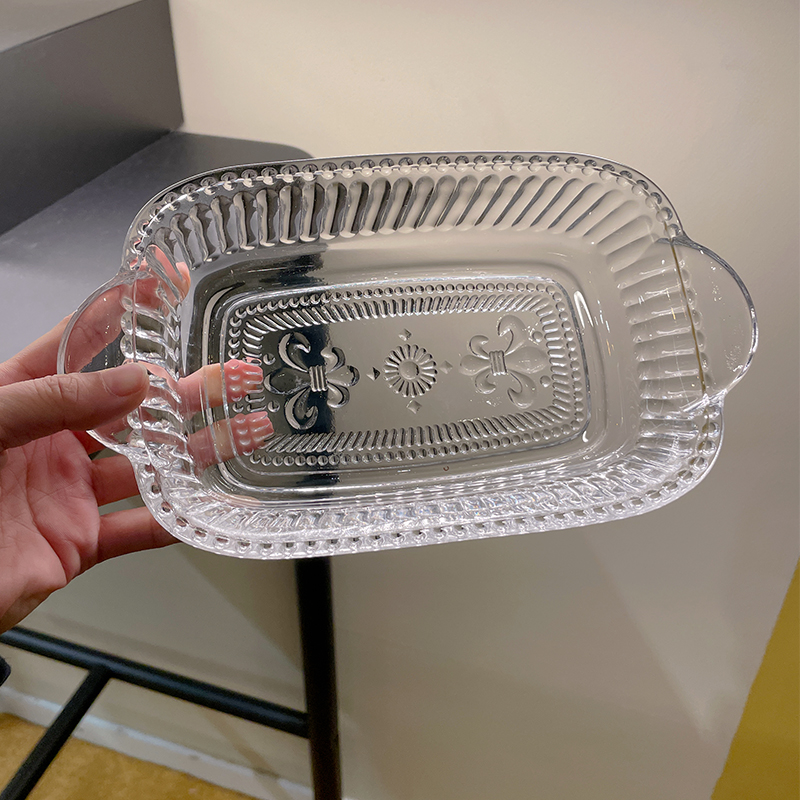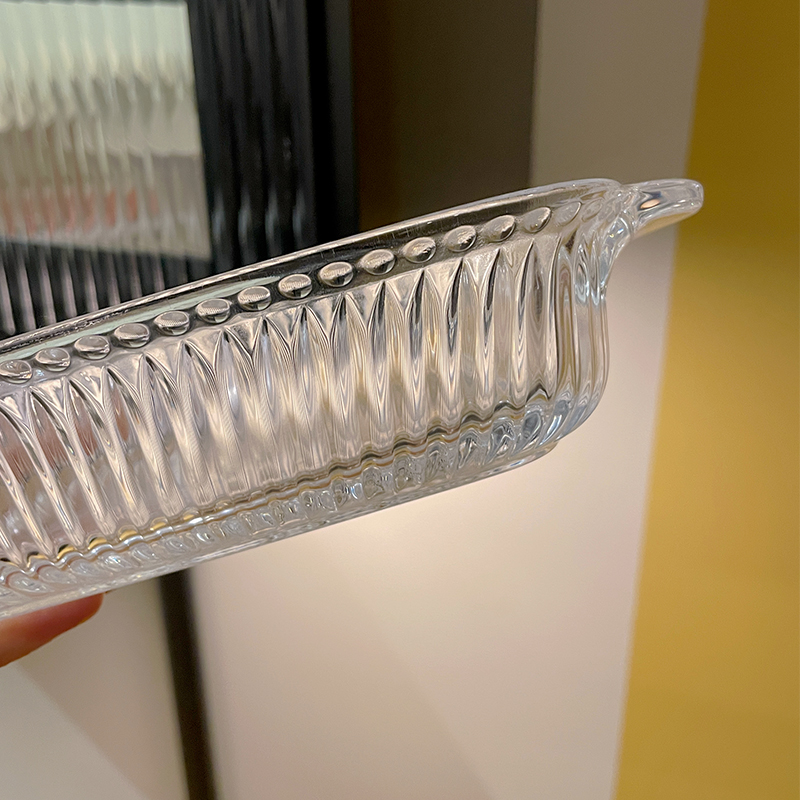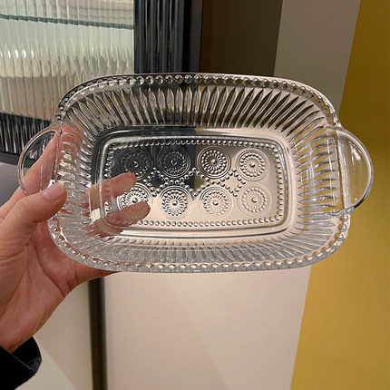 高级感ins透明玻璃碗家用双耳水果捞蔬菜沙拉碗网红浮雕甜品果盘