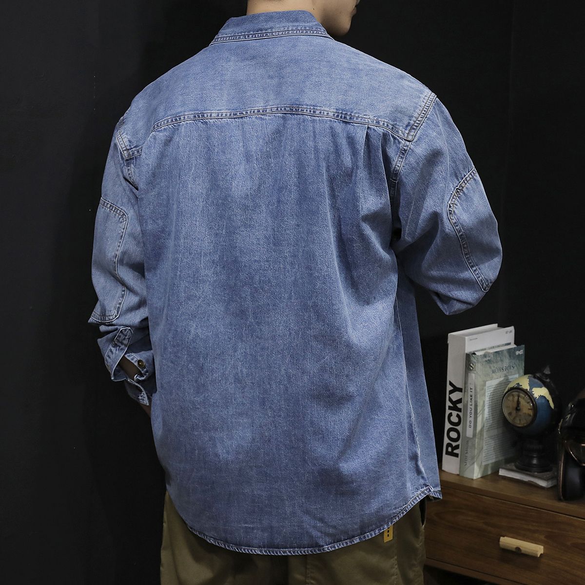 秋季美式衬衣男款2024新款外套男士休闲春秋上衣长袖牛仔衬衫男