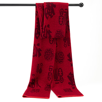 上海故事红围巾福字百福围脖送长辈爷爷奶奶爸爸妈妈过年过寿老人