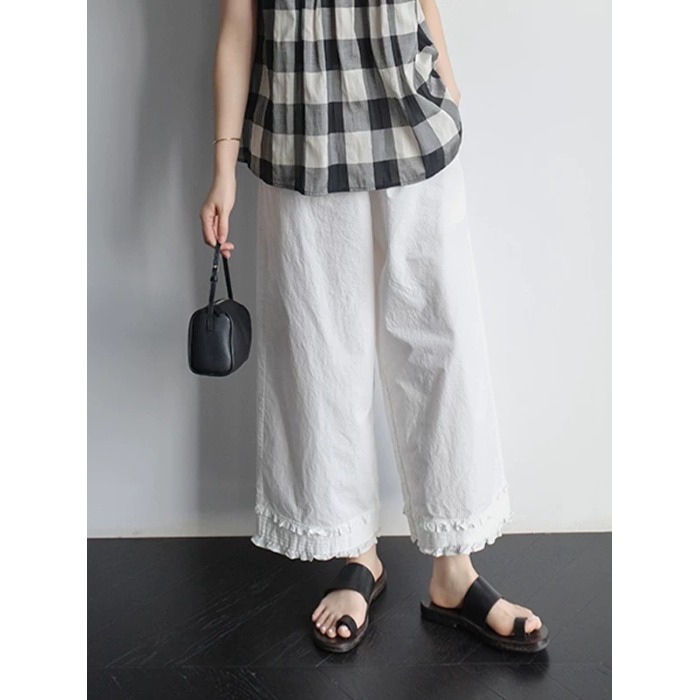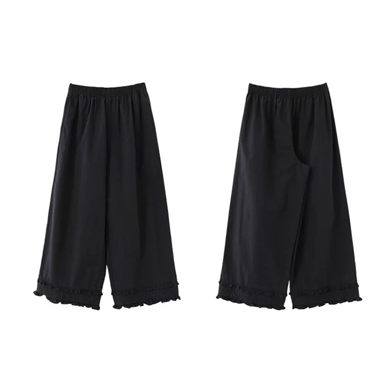 复古森系木耳边休闲阔腿裤女夏季日系高腰显瘦宽松叠穿休闲九分裤
