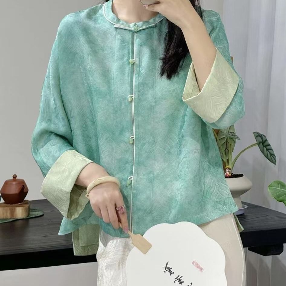 国风薄款防晒开衫外套女时尚圆领新中式小个子轻奢双面穿气质上衣