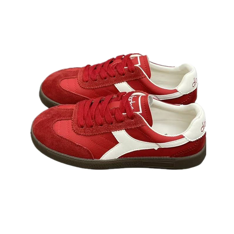真皮德训鞋女2025秋季新款韩版百搭软底拼色小白鞋防滑舒适潮板鞋