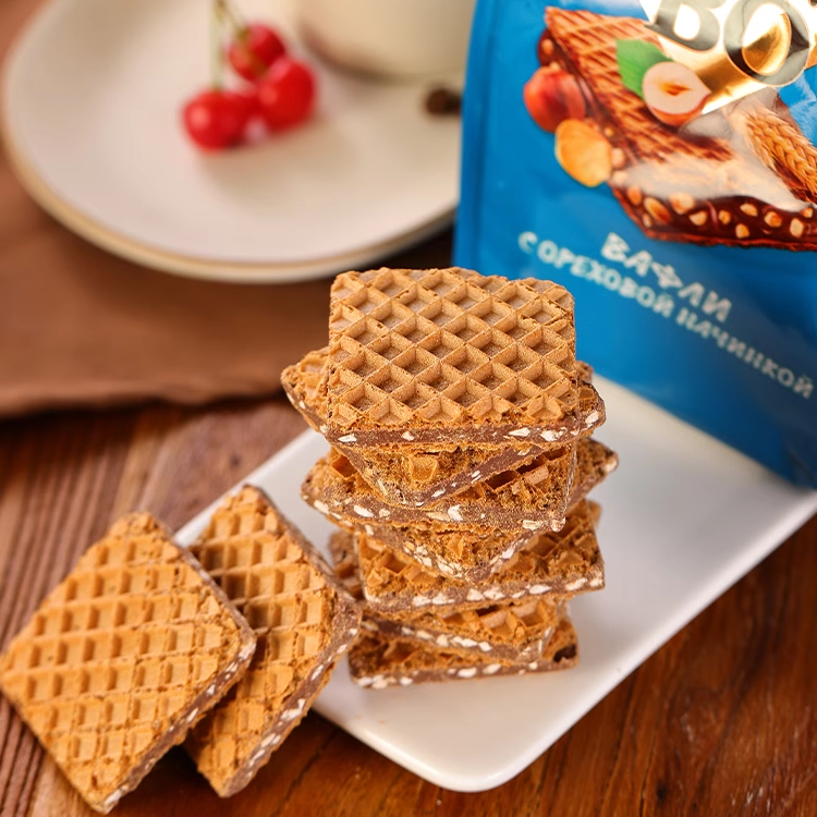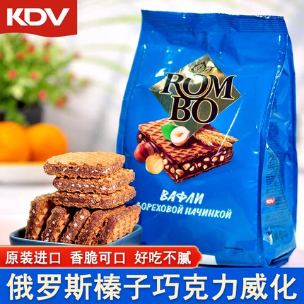 俄罗斯进口巧克力榛子威化夹心饼干可可脂KDV休闲网红零食食品