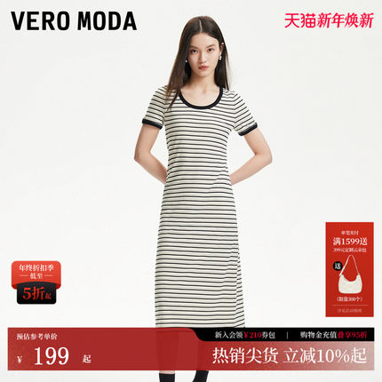 Vero Moda连衣裙2025夏季新款撞色条纹圆领宽松舒适中长T恤裙