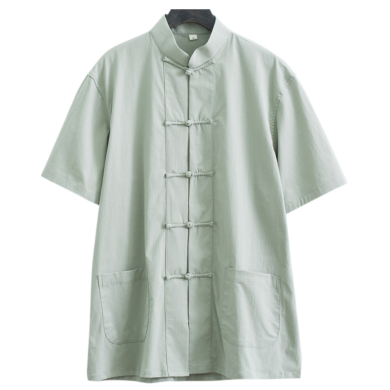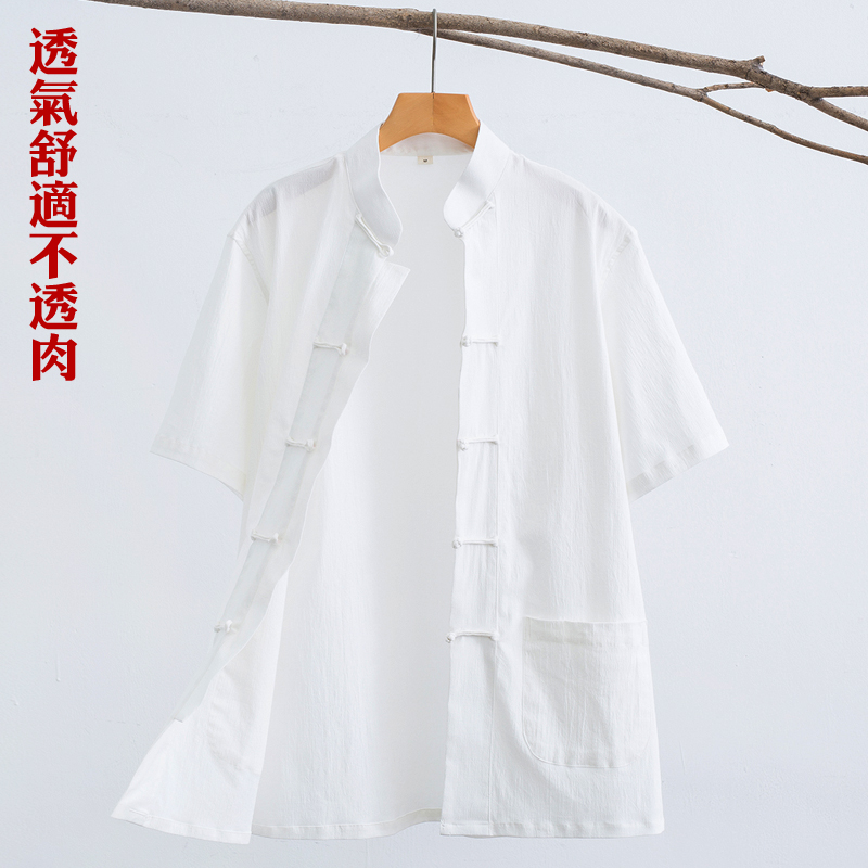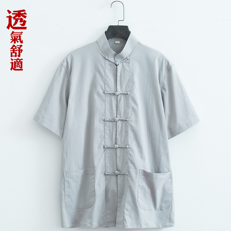 唐装男夏季薄款短袖上衣中国风中式复古男装中青年立领半袖衬衣