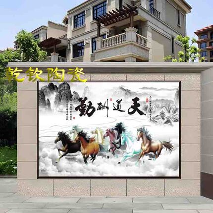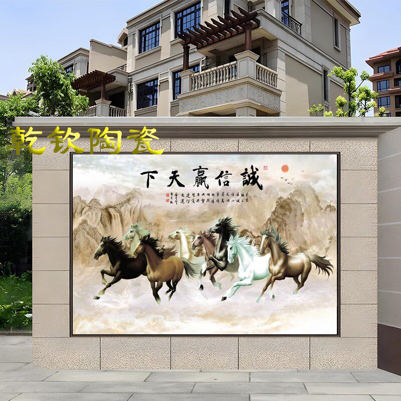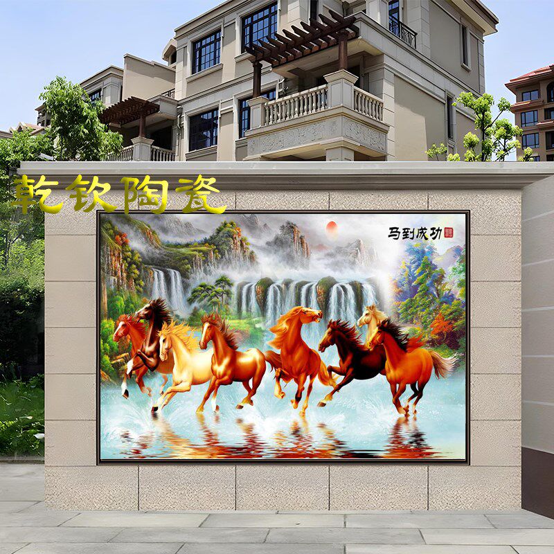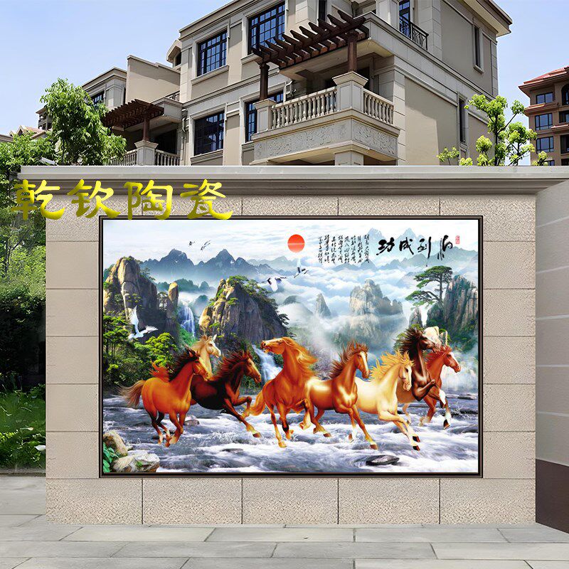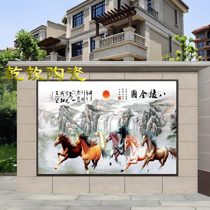 定制大型户外墙瓷砖马到成功瓷砖壁画背景墙八骏图迎门墙影照壁画