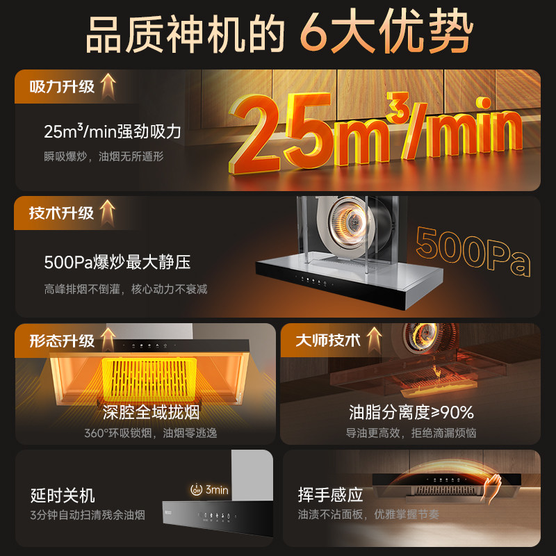 帅康顶吸式油烟机家用厨房大吸力自动清洗T型欧式抽吸油机T810