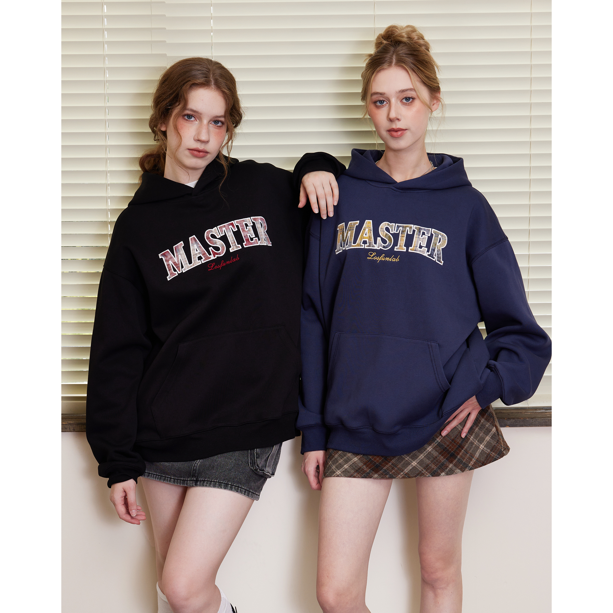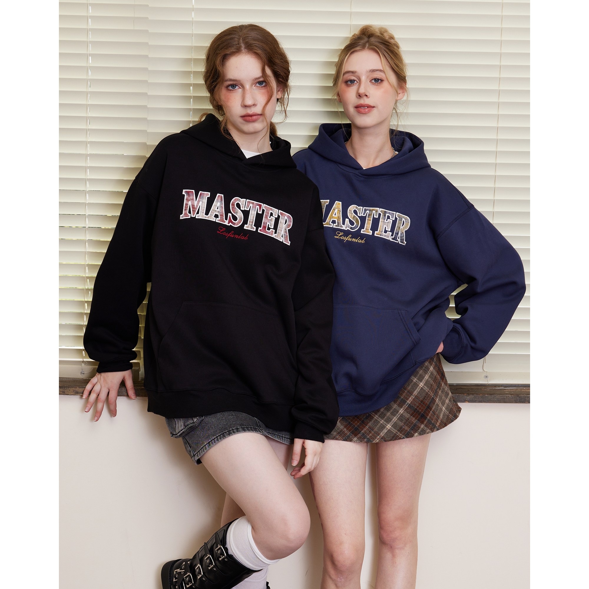 Beikastudios藏青色卫衣女连帽24秋新款贴布绣重磅加厚410G外套