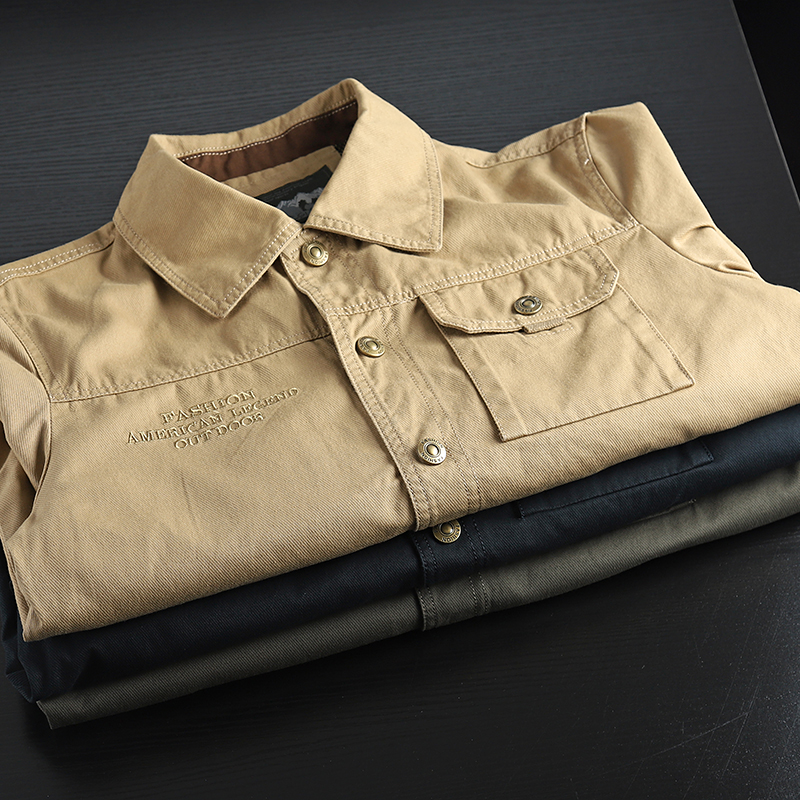 春秋翻领夹克男士户外多口袋工装外套男宽松大码休闲透气上衣男装