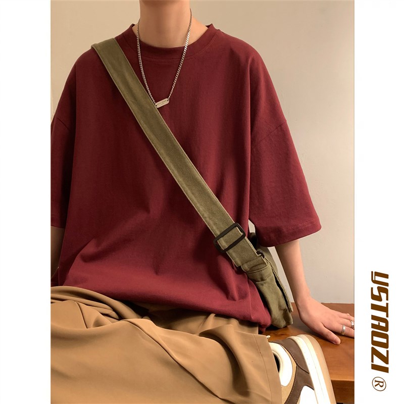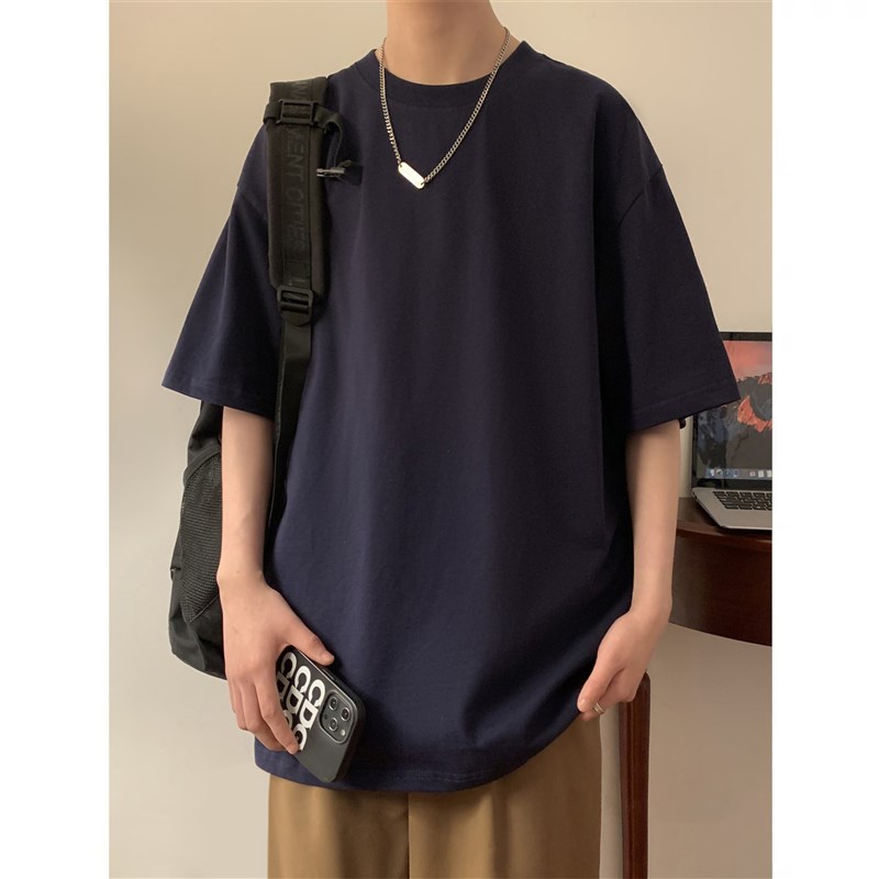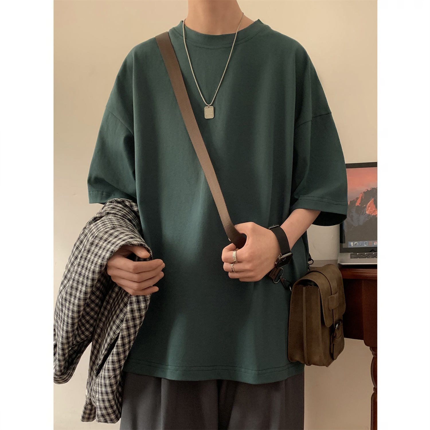 纯色短袖t恤男夏季潮牌重磅五分袖宽松简约潮流休闲纯棉半袖衣服