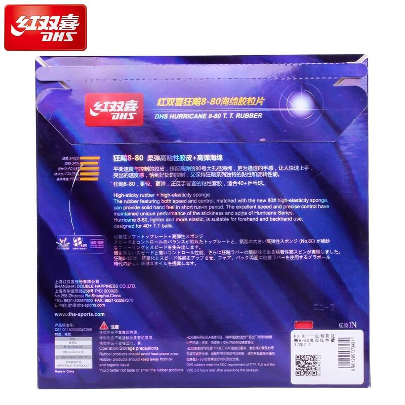 红双喜乒乓球拍胶皮狂飚8-80兵乓反胶套胶高粘性狂飙8省套880正品