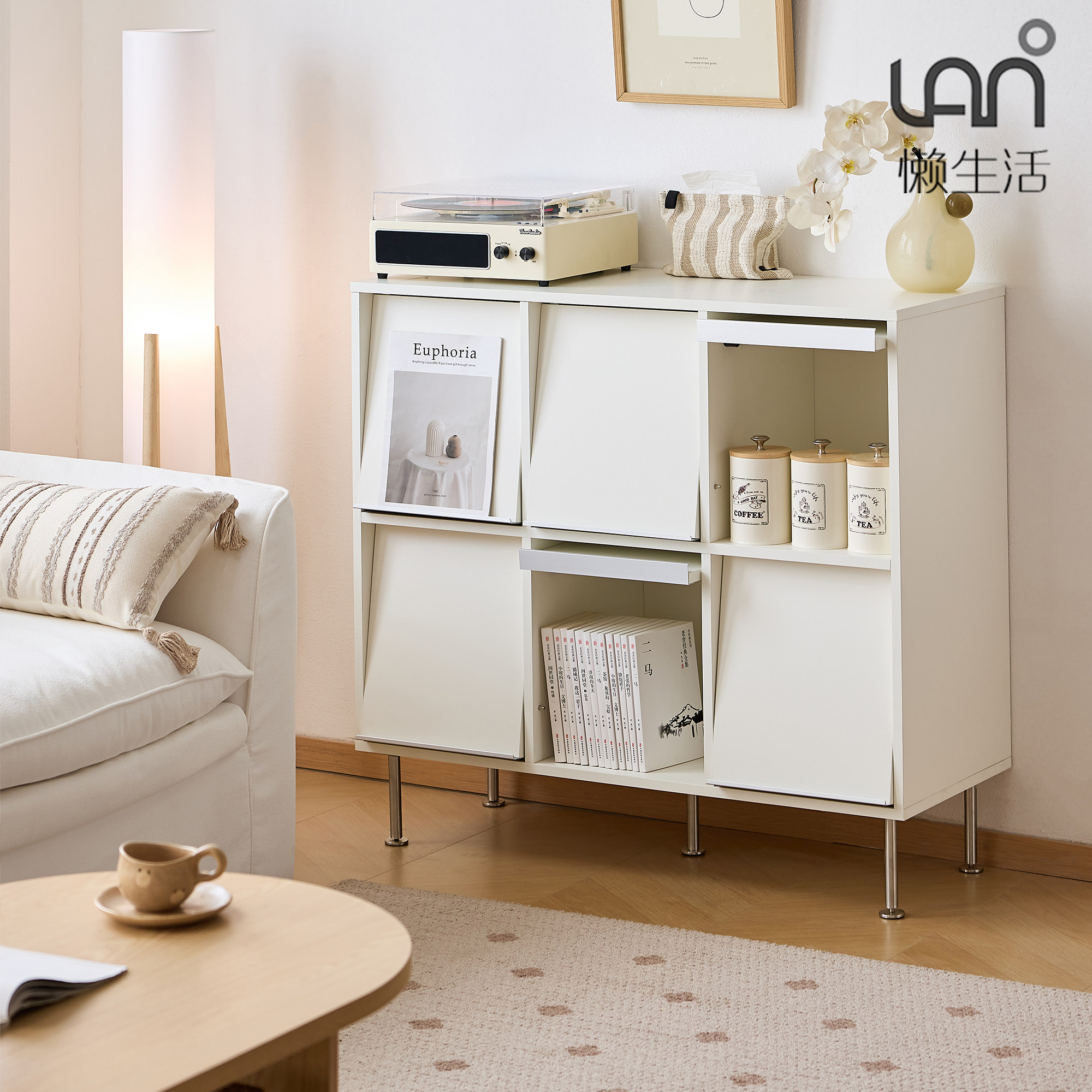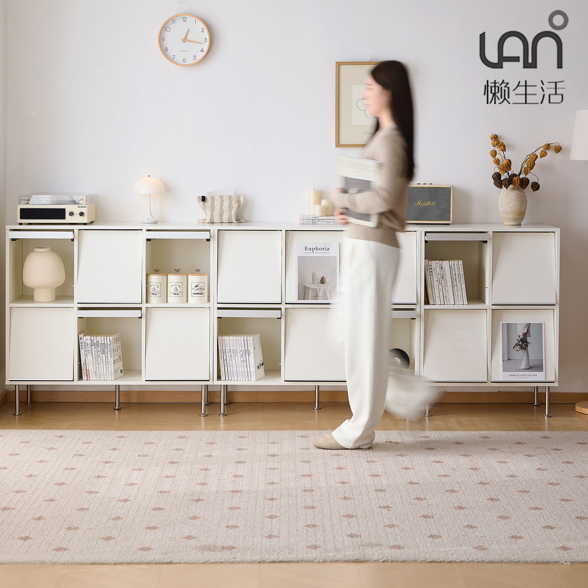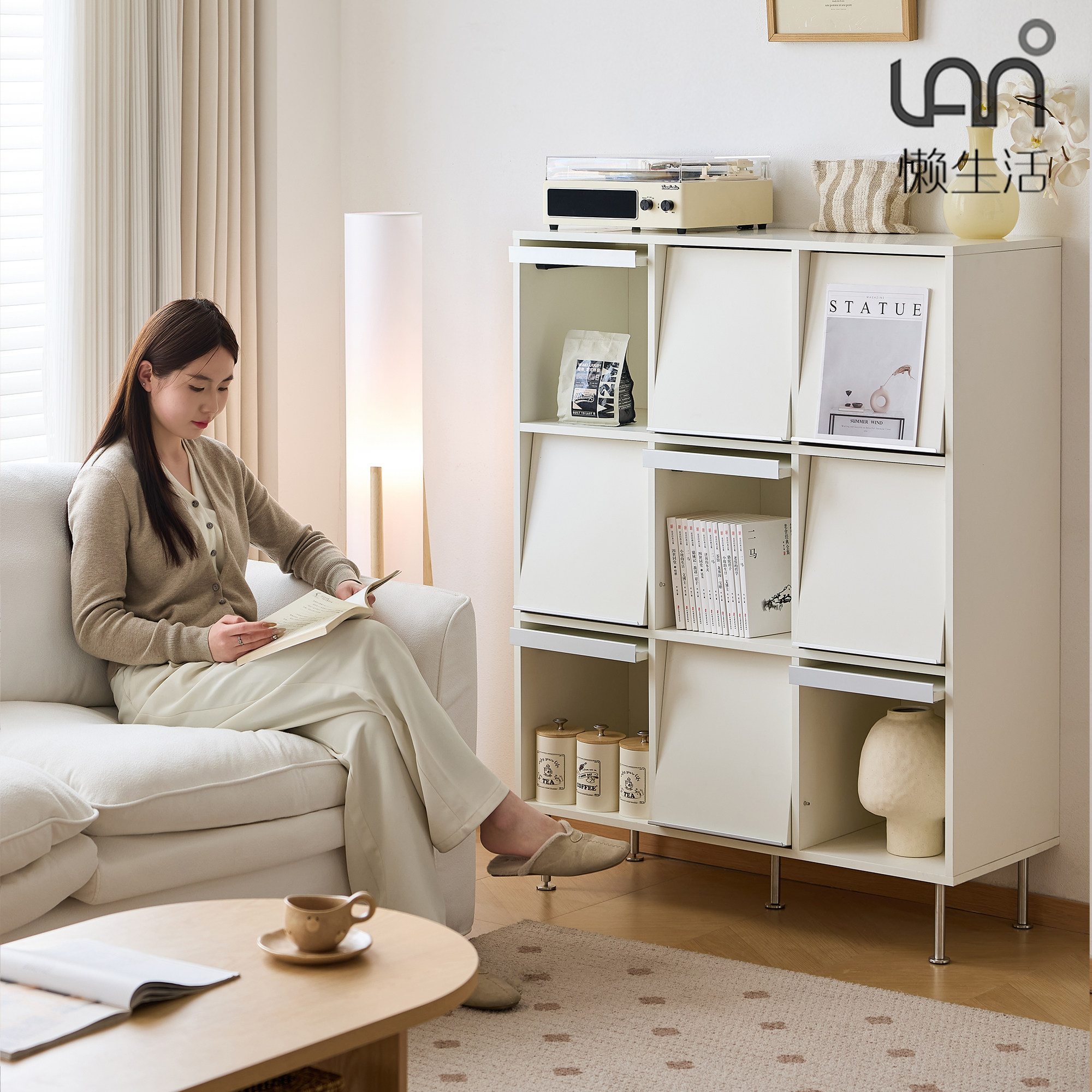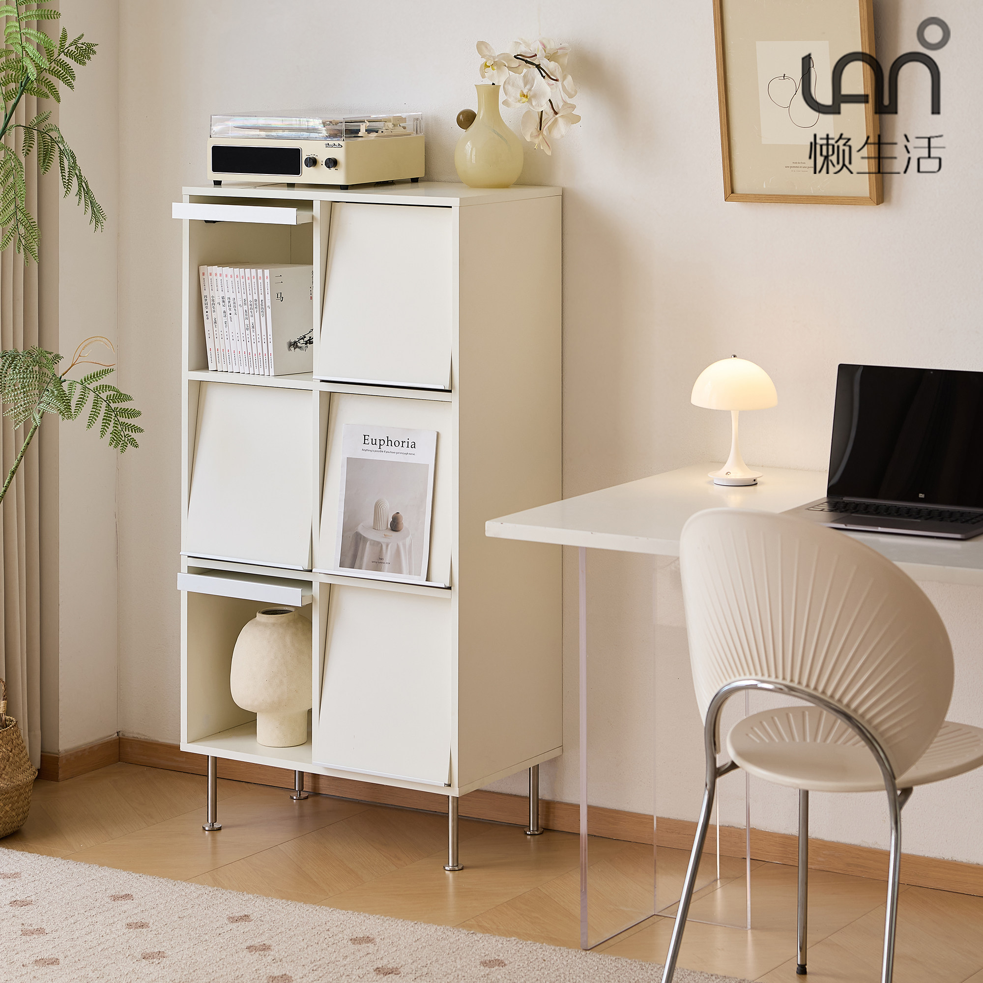 懒生活实木书架白色奶油风书房儿童书柜自由组合格子柜靠墙展示架