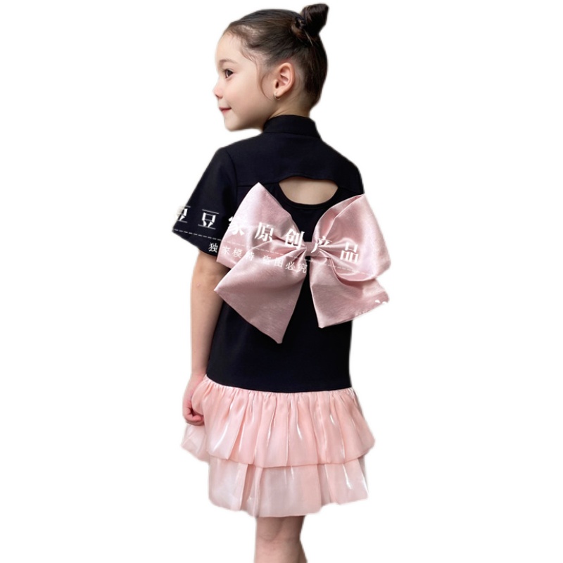 豆豆家原创女童旗袍2023魔鬼款夏季个性大蝴蝶结旗袍小女孩连衣裙