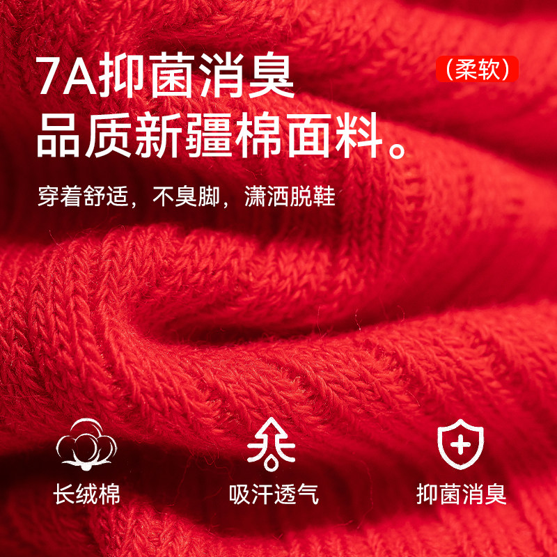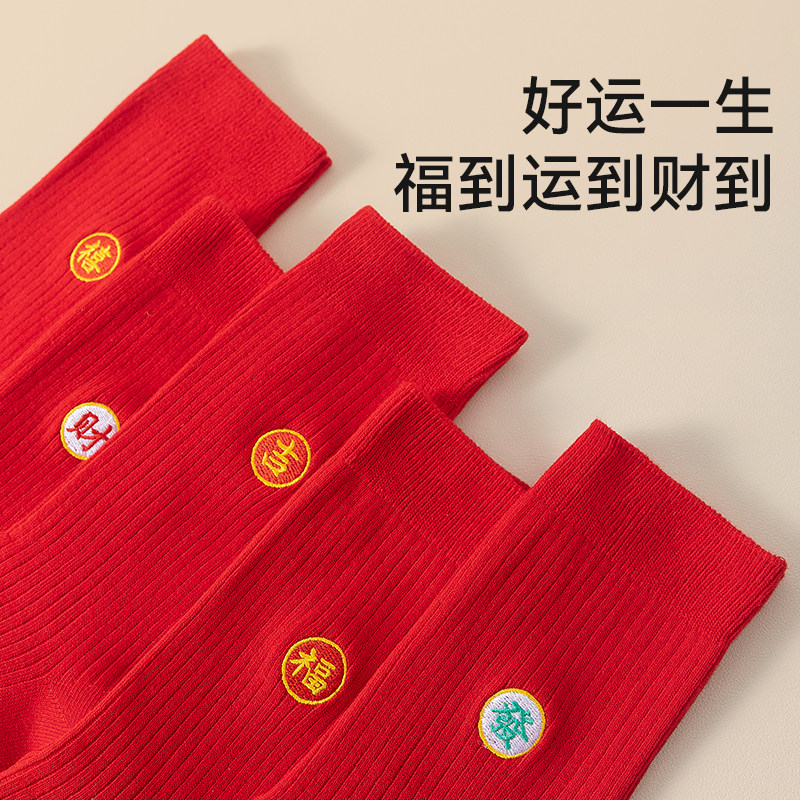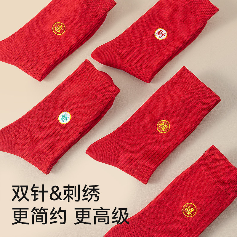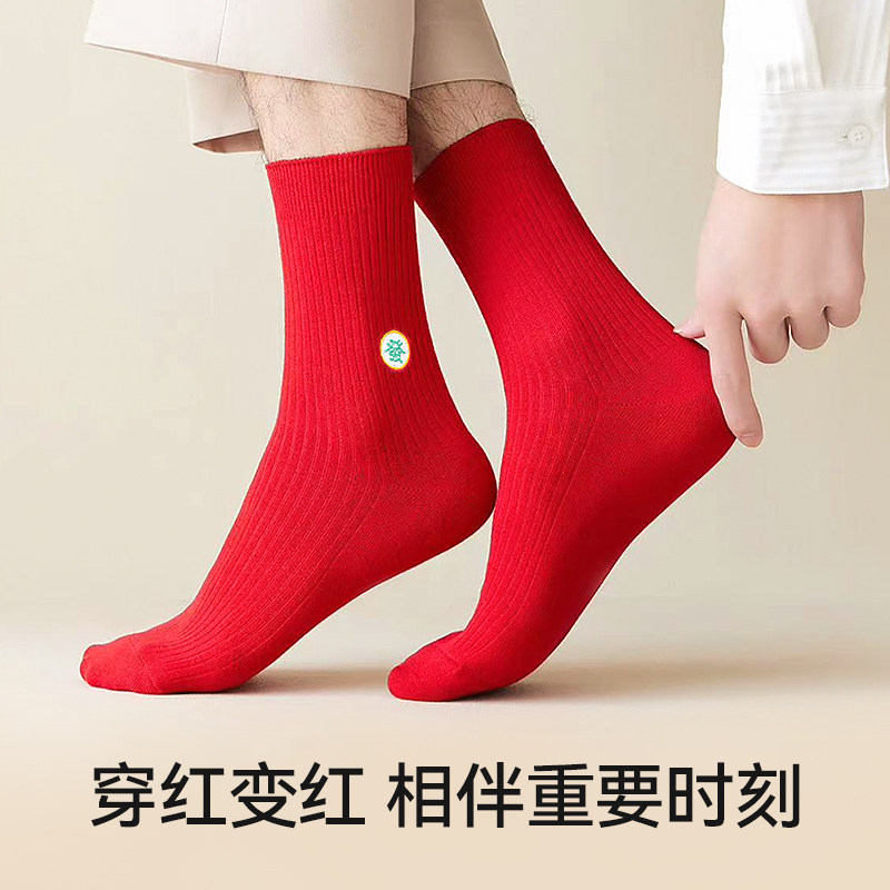 猫人红色袜子男款本命年纯棉抑菌消臭中筒袜结婚新年喜庆鸿运女袜