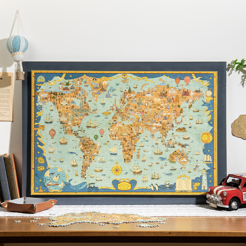 猫的天空之城1000片拼图穿梭世界的旅程复古世界地图成人版玩具