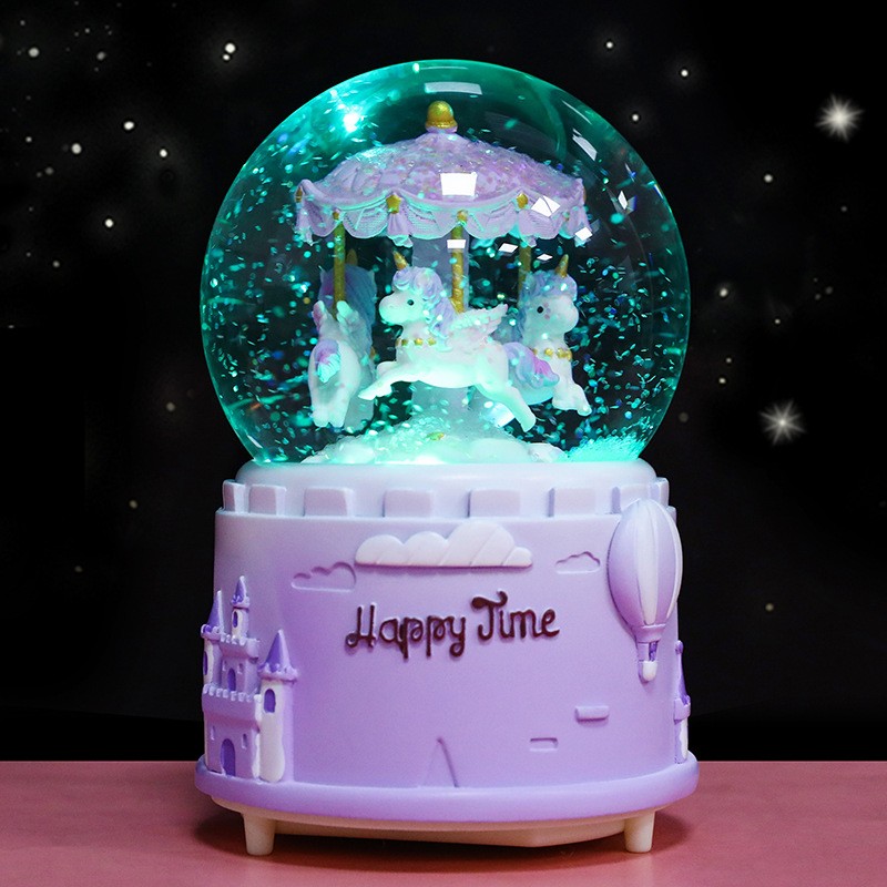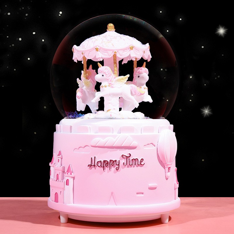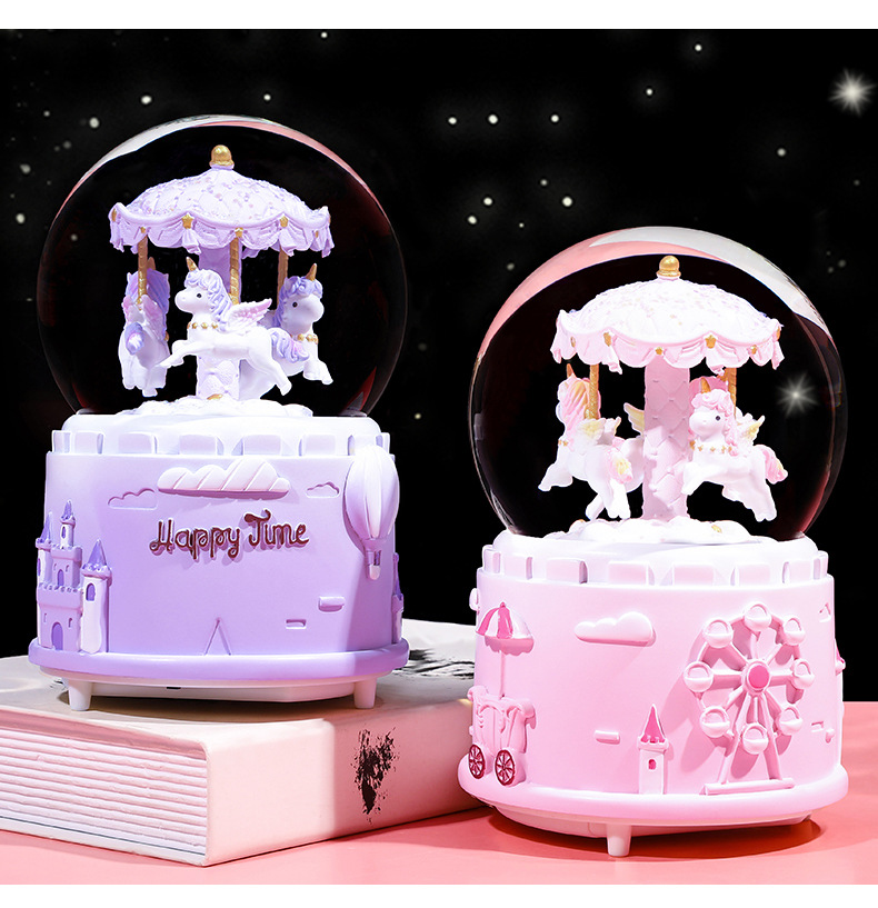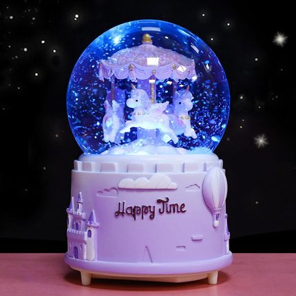 旋转木马水晶球音乐盒男生女孩子公主八音盒儿童十岁实用生日礼物