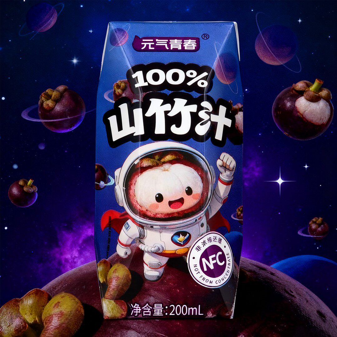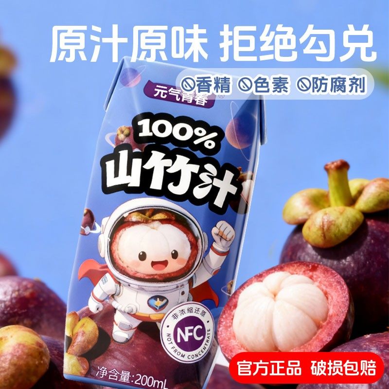 元气青春【纯的果汁】100%NFC山竹汁果汁饮料鲜榨山竹果蔬汁200ml
