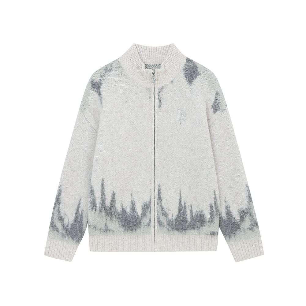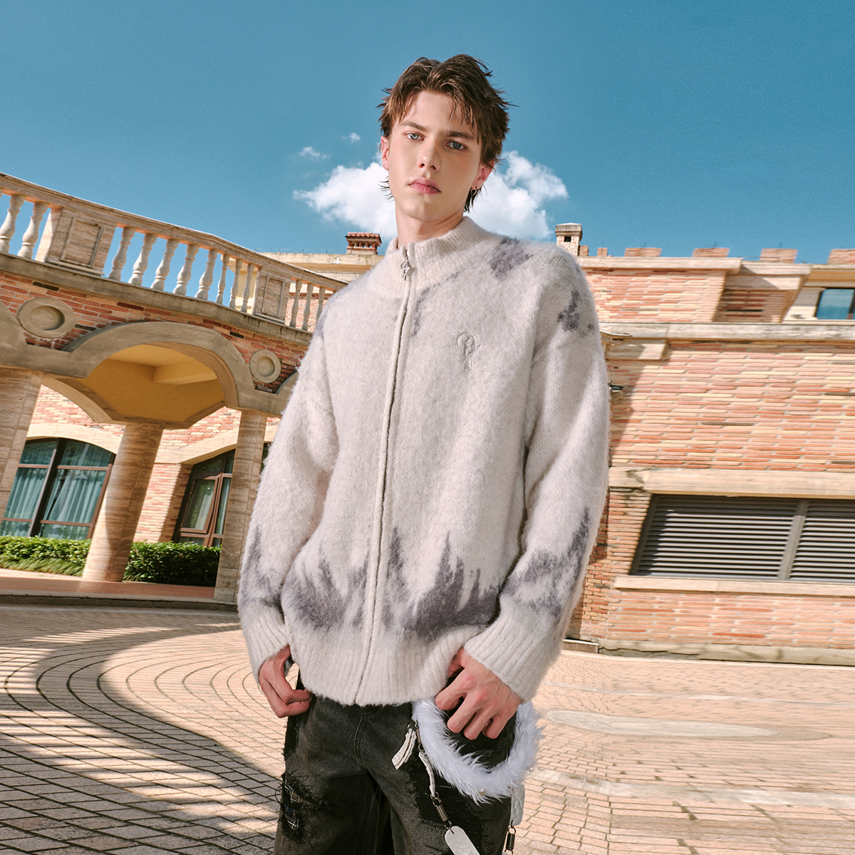 FORNINES慵懒提花立领毛衣外套男女潮牌秋冬情侣加厚美式针织开衫