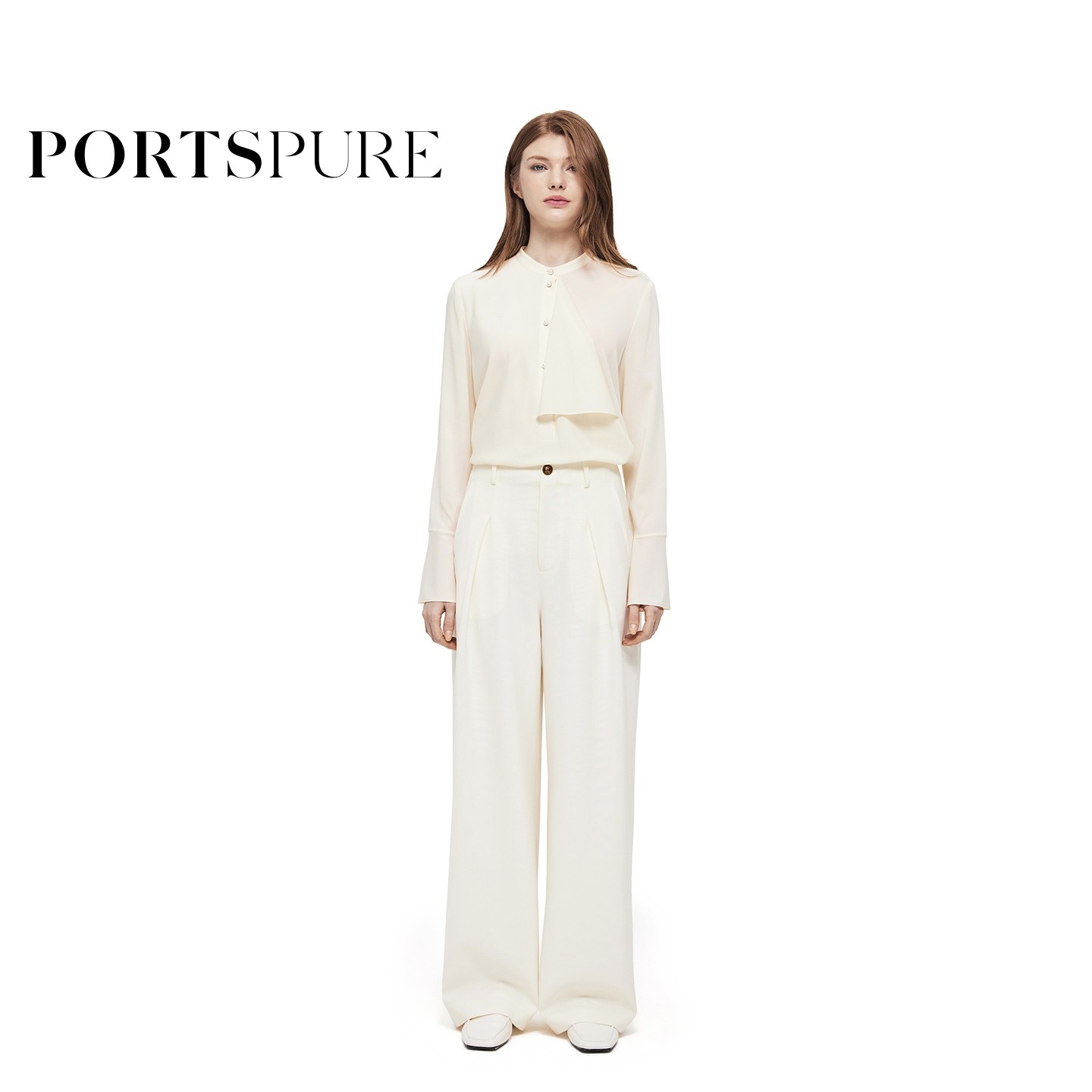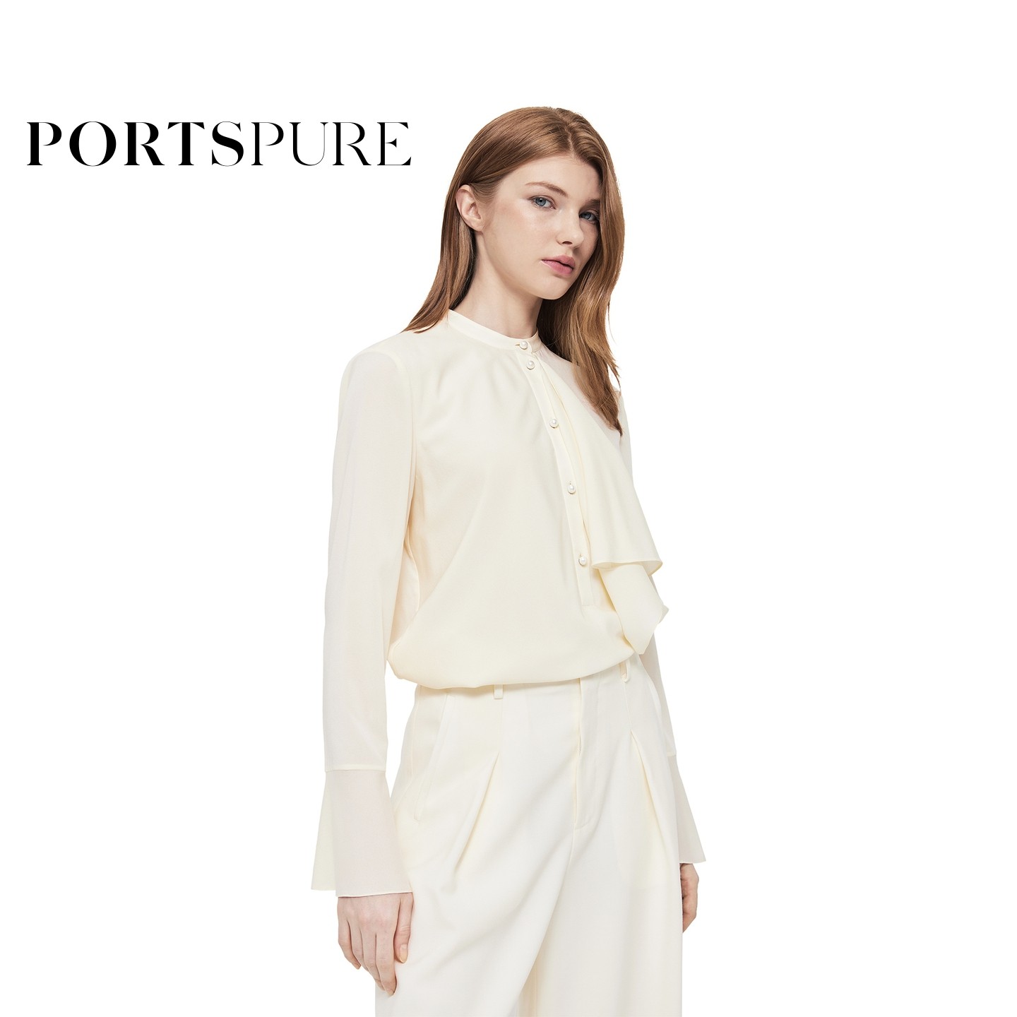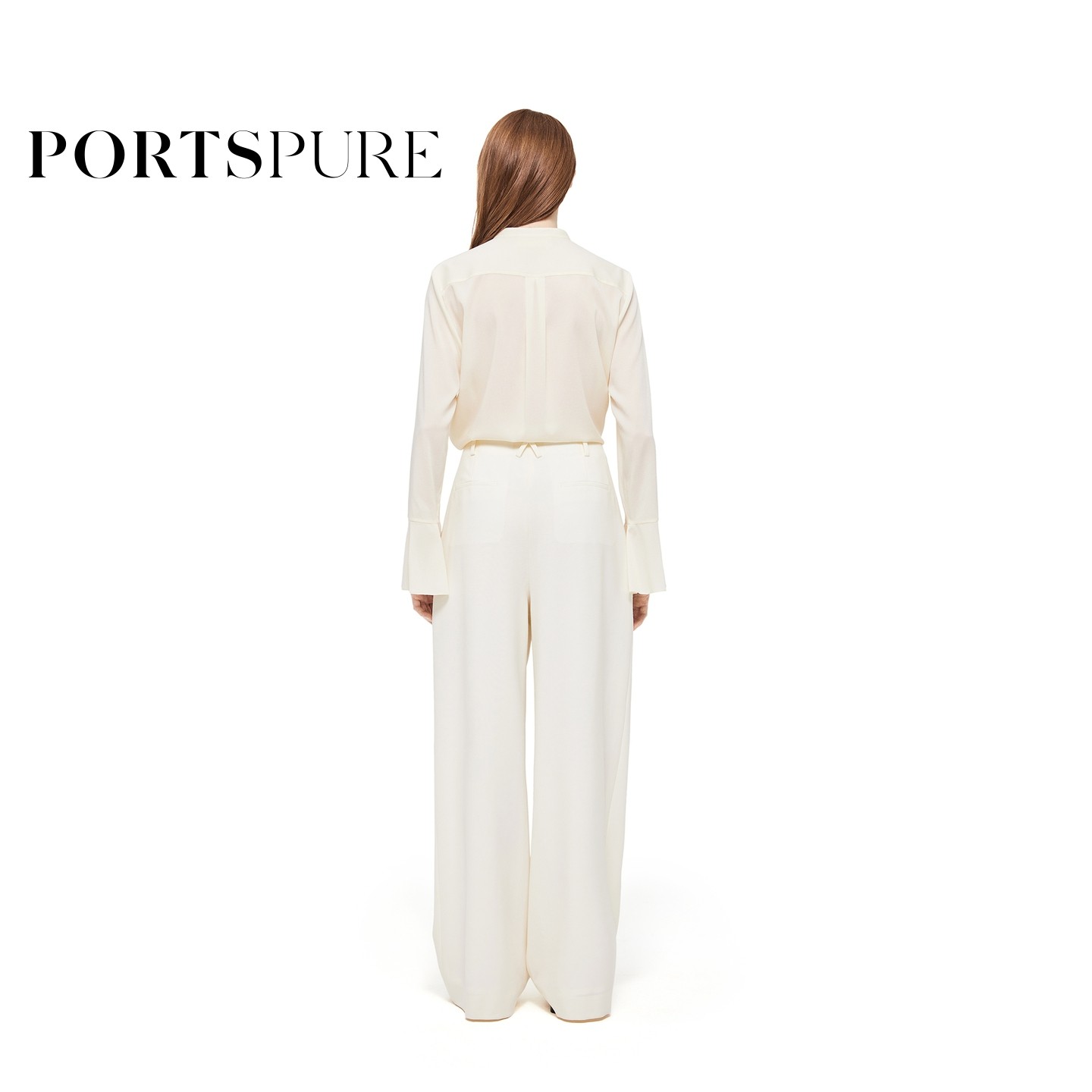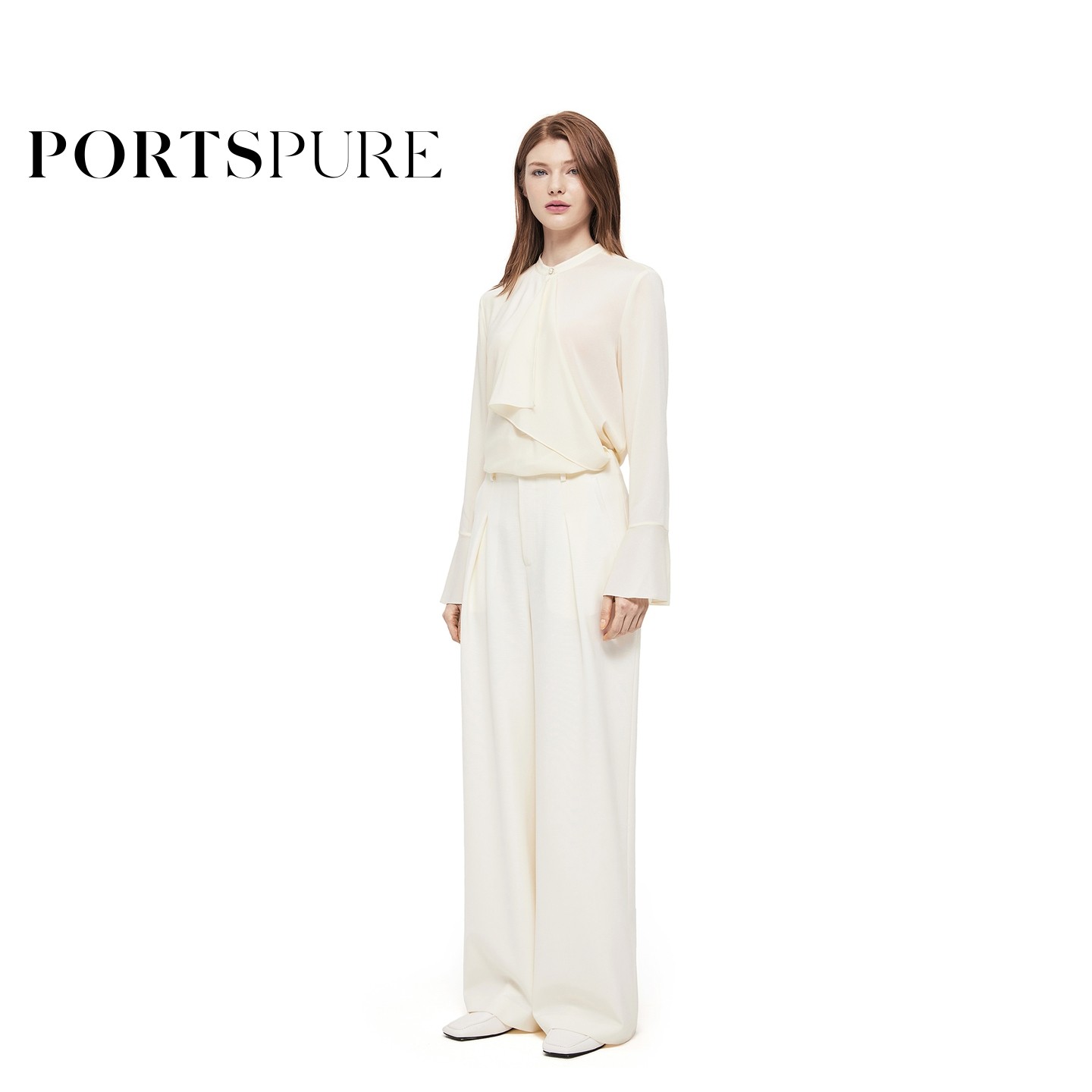 【博主同款】宝姿PORTSPURE女装春秋品桑蚕丝喇叭袖经典飘带衬衫