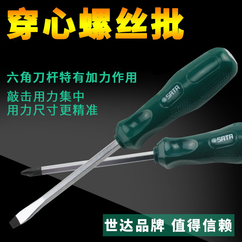 世达工具穿心螺丝批一字十字可敲击螺丝刀改锥起子61613/61713
