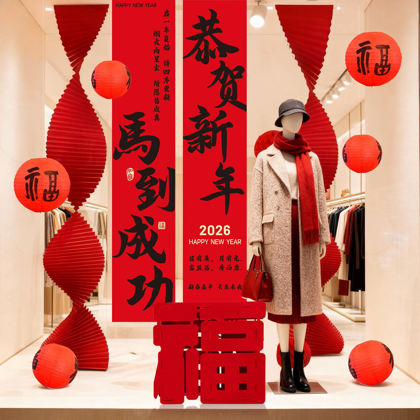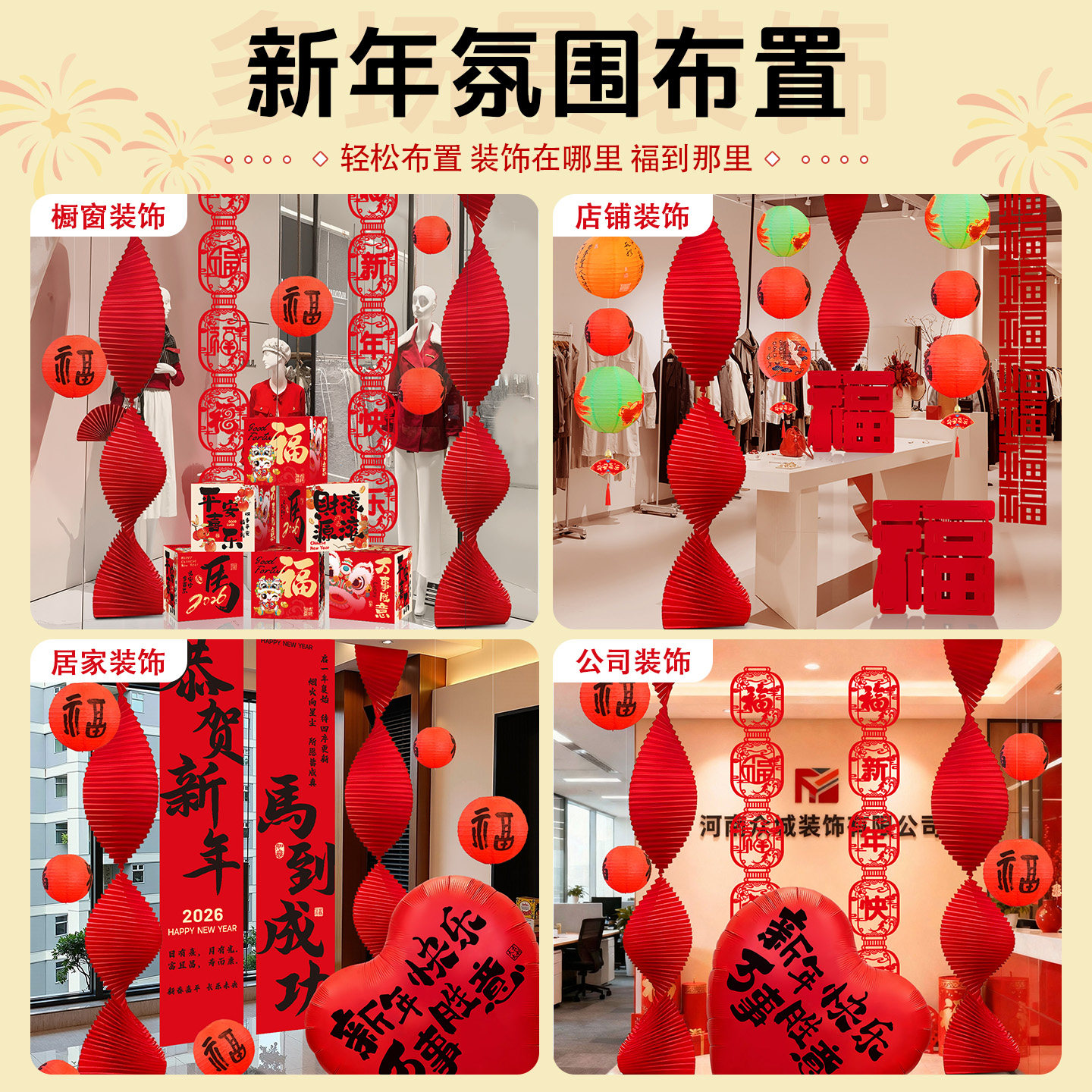 2026马年新年氛围布置装饰拉花春节过年客厅商场店铺迎新灯笼挂饰