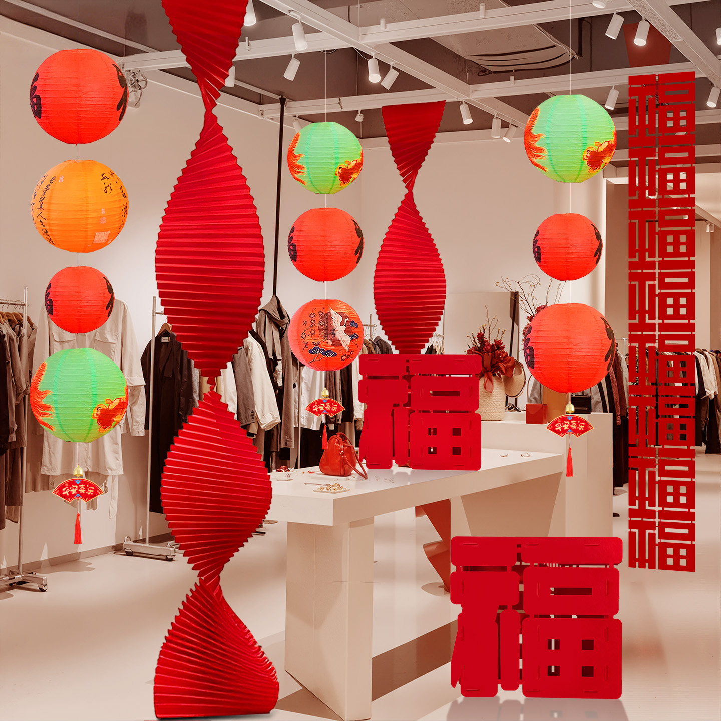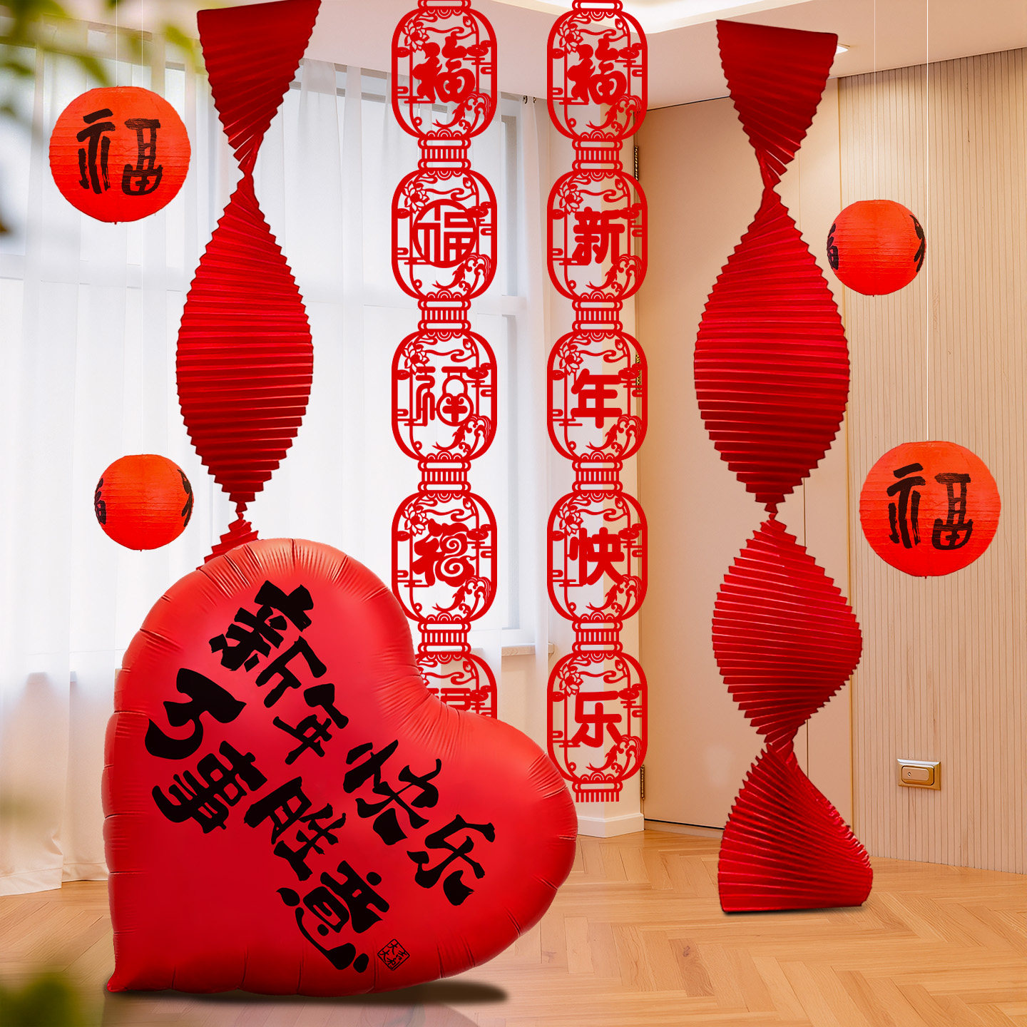 新年氛围布置套装拉花福字灯笼