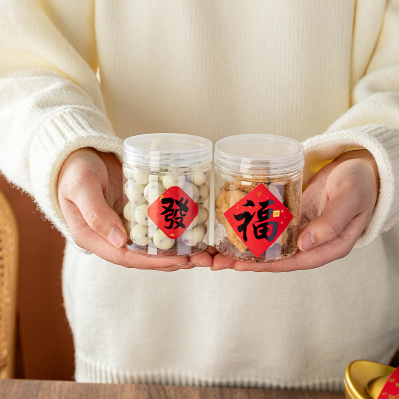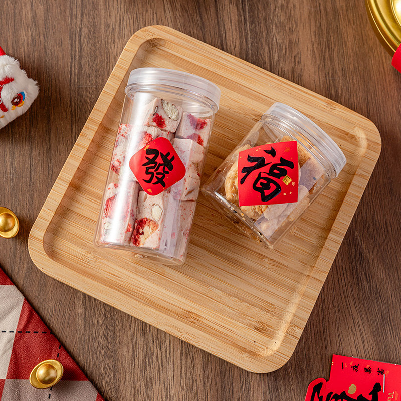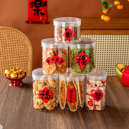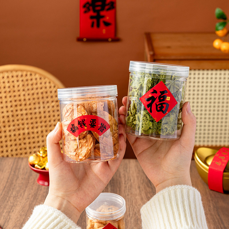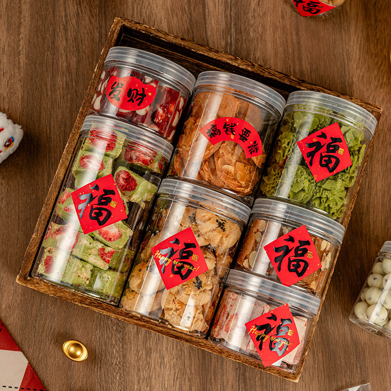 2025新年曲奇饼干包装盒透明罐糯米船雪花酥密封罐子奶枣糖果贴纸