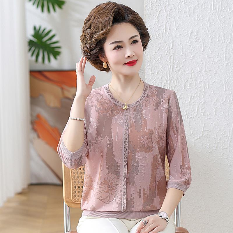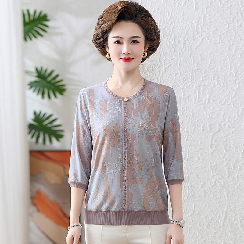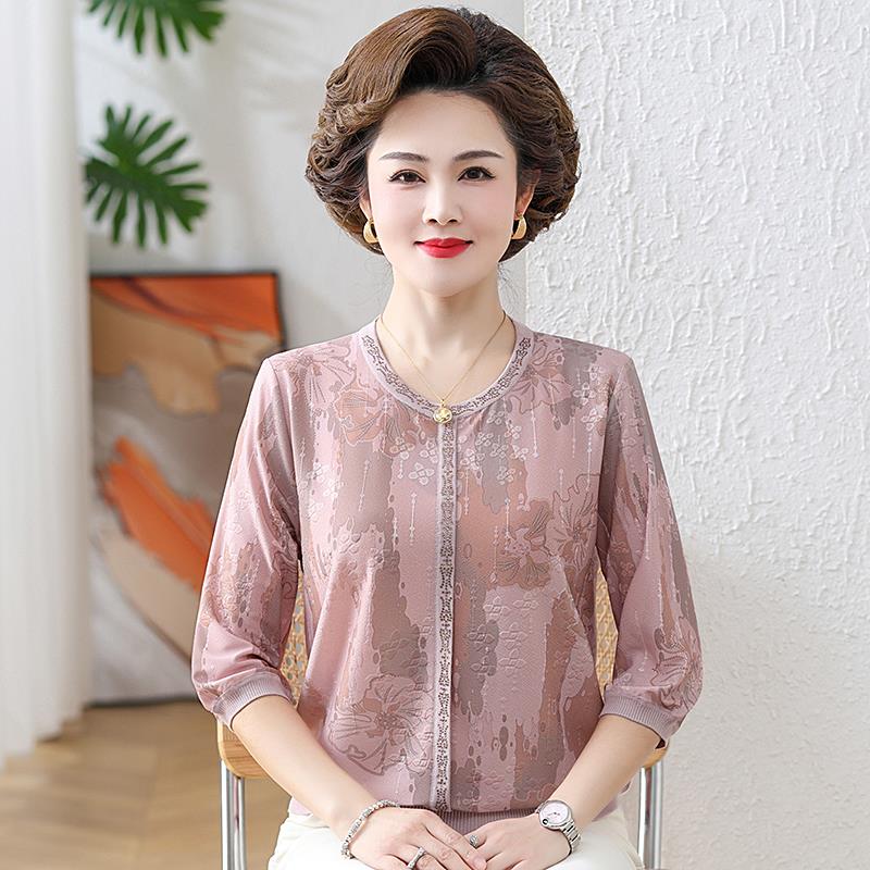 妈妈夏装七分袖圆领真丝上衣服新款薄款小衫中老年中袖桑蚕丝T恤