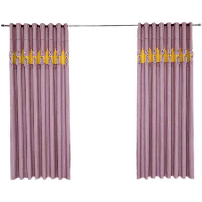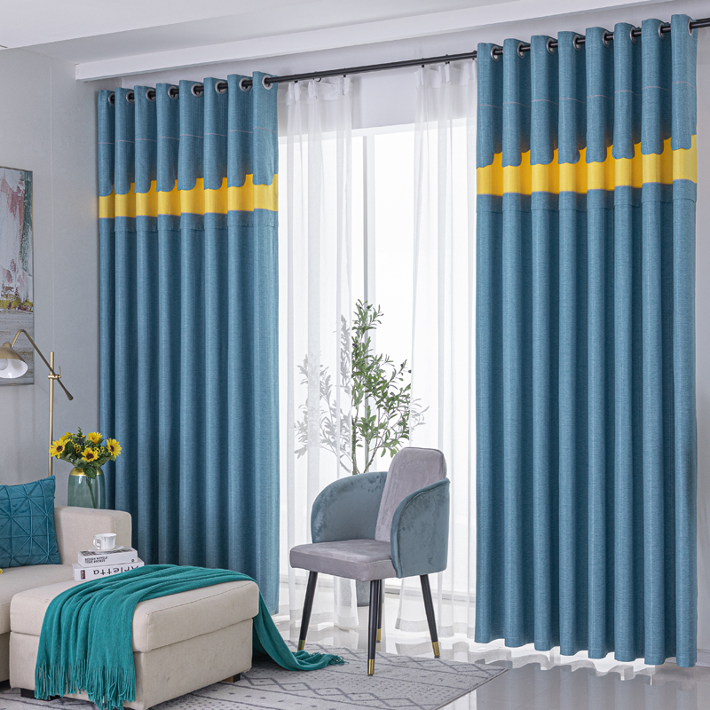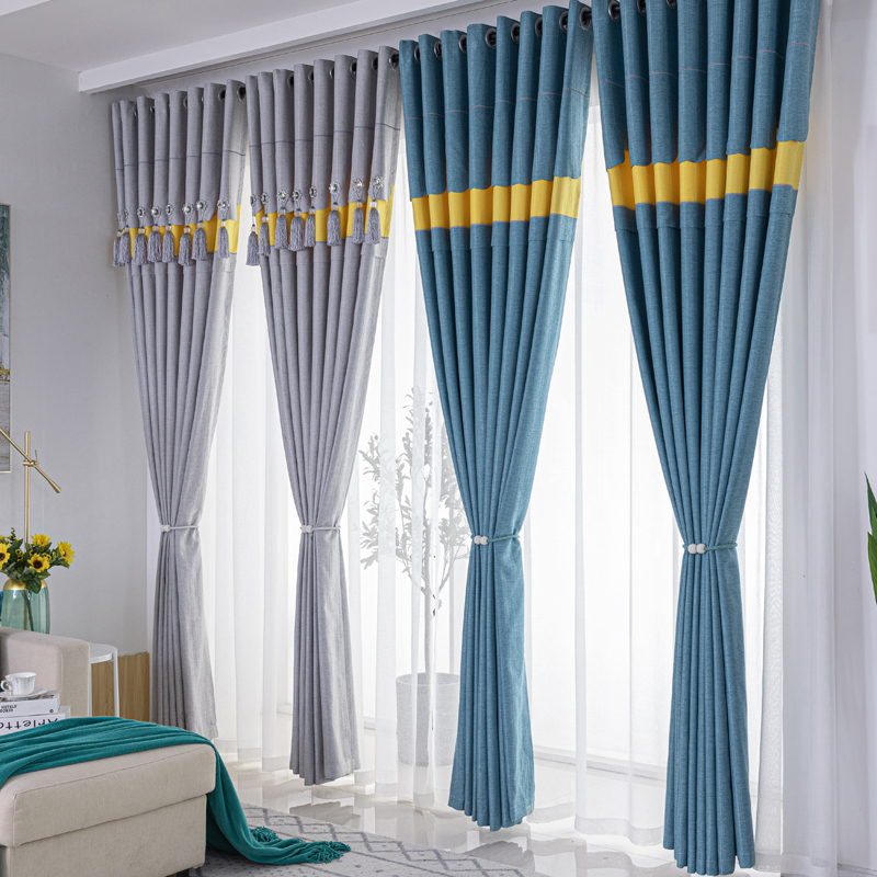 窗帘21年新款客厅现代简约轻奢打孔吊穗上下横拼接自带假帘头成品