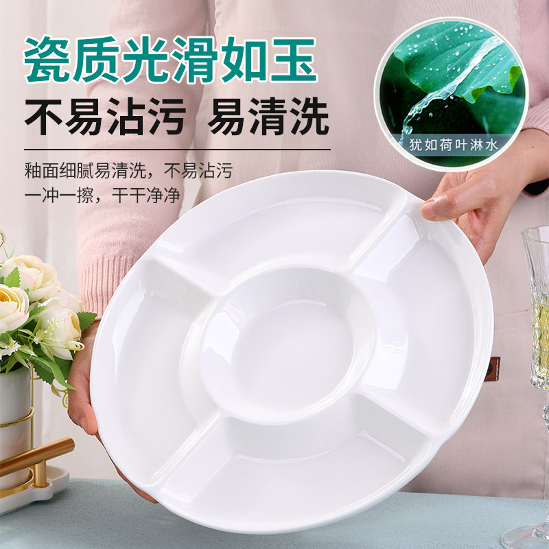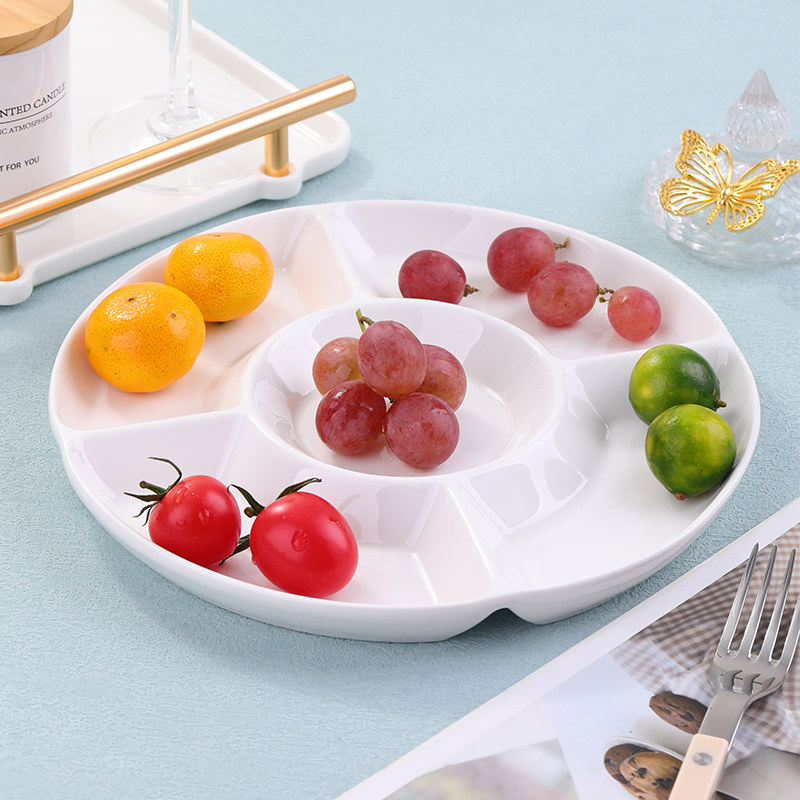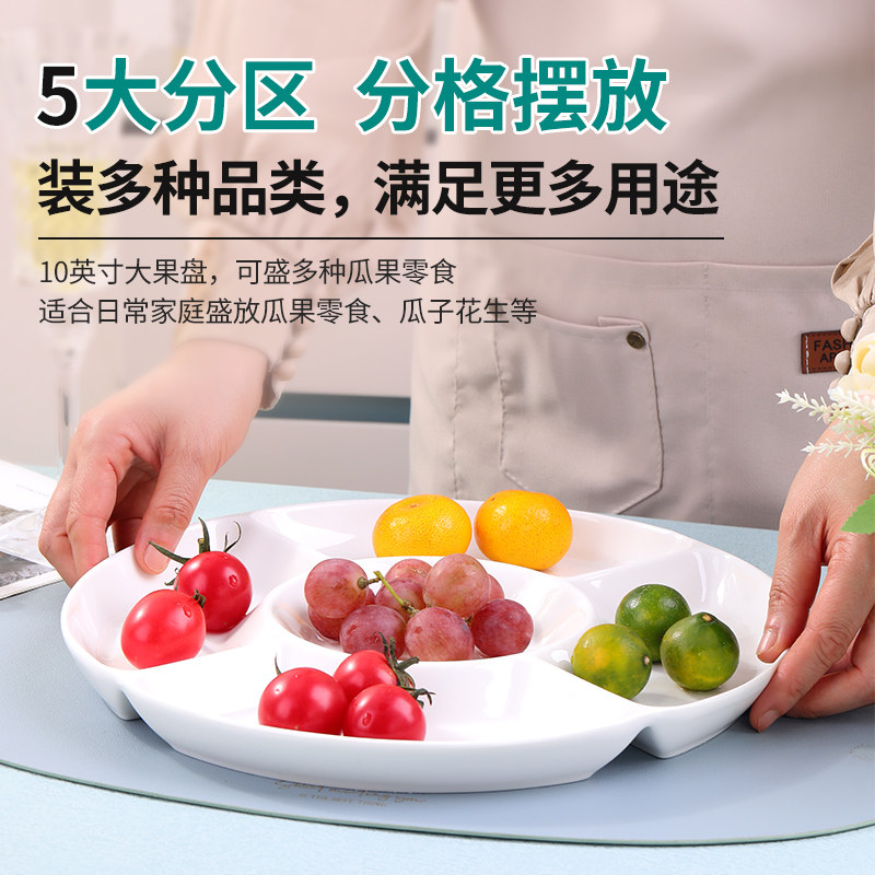 陶瓷水果盘家用茶点零食糖果糕点坚果小吃干果分格摆放盘卤水拼盘