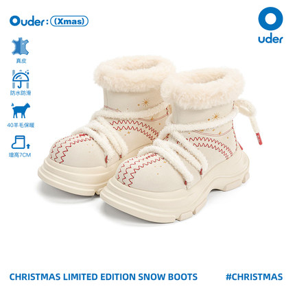 Ouder雪地靴女冬季新款真皮羊毛