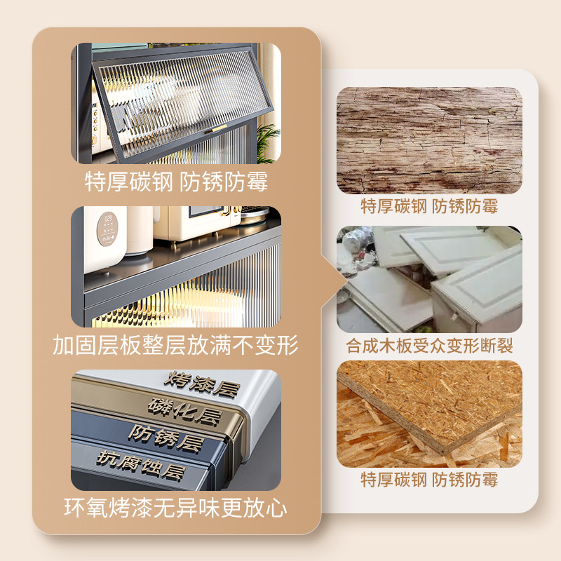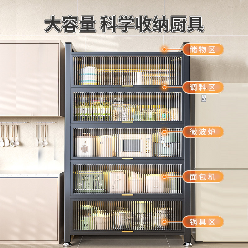厨房多功能置物架家用落地多层防尘微波炉收纳柜碗筷柜餐边储物柜