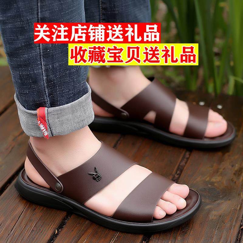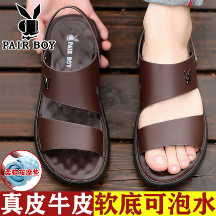 凉鞋男软底防滑沙滩鞋全牛皮凉拖