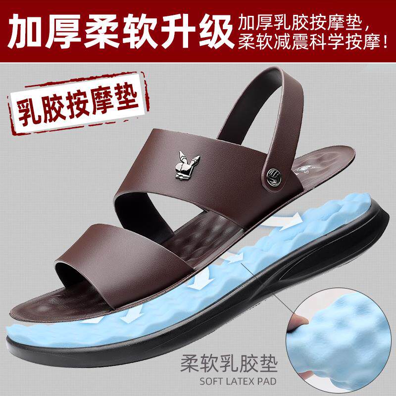 男士凉鞋2024夏季新款真皮软底沙滩鞋全牛皮外穿防滑两用爸爸凉拖