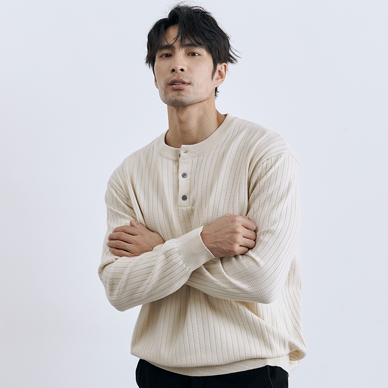秋冬亨利领毛衣男士圆领保暖冬装男士设计感门筒领百搭休闲针织衫