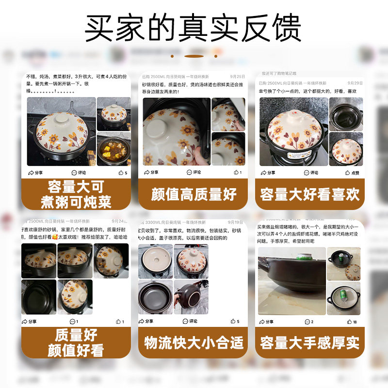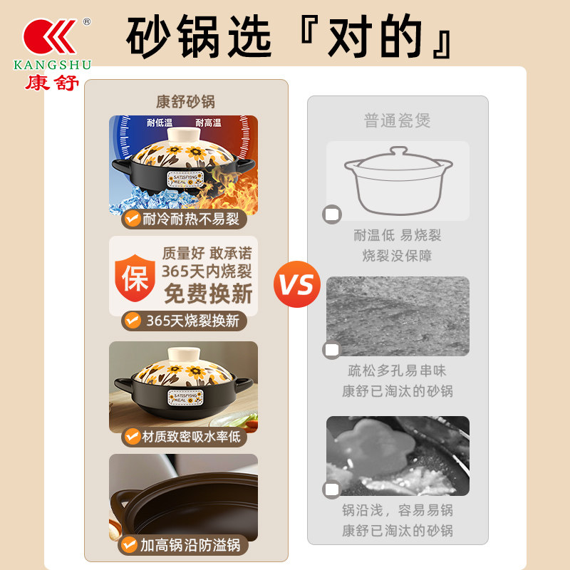 康舒向日葵家用砂锅燃气灶耐高温干烧煲仔饭煤气灶专用煲汤锅沙锅