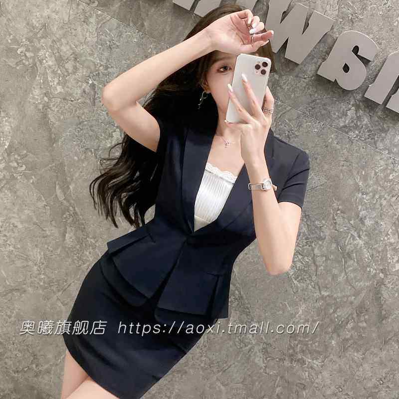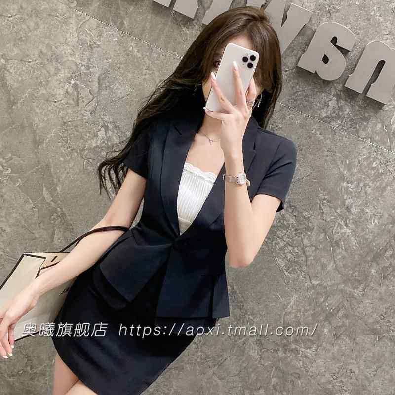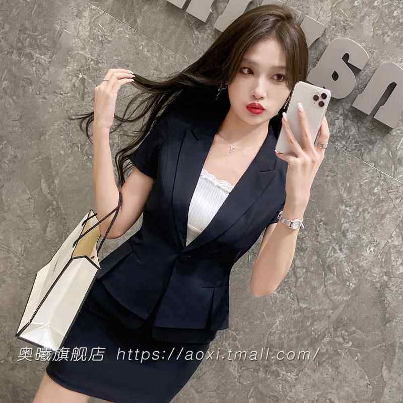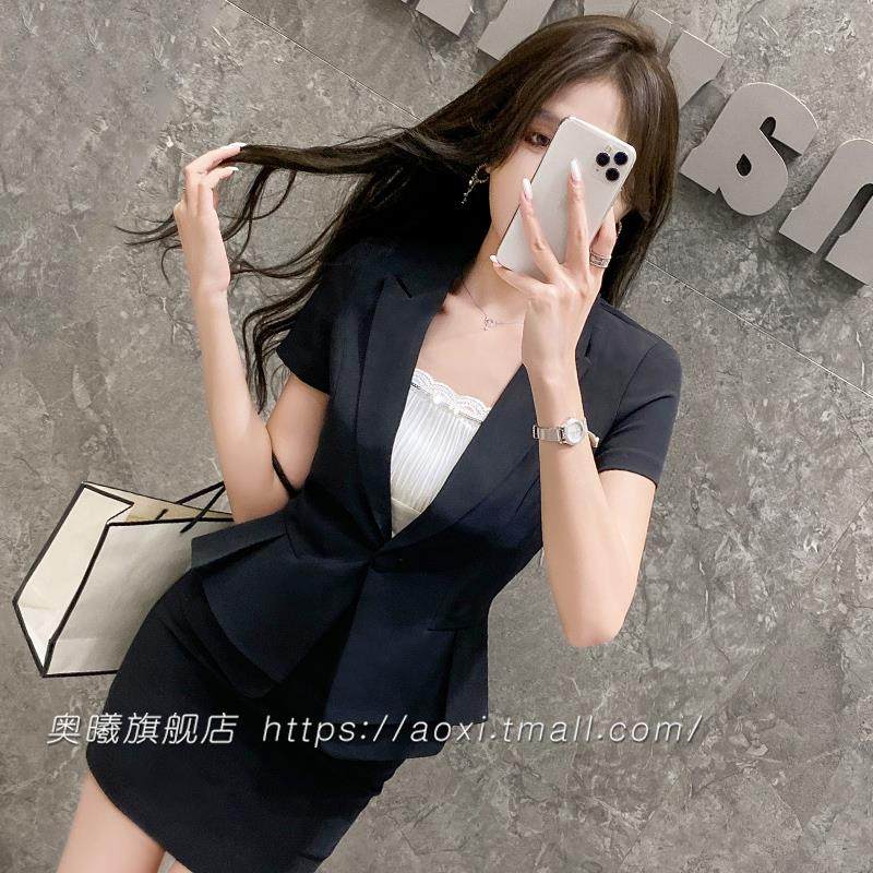 西装外套女气质套装夏季新款荷叶边西服高档时髦工作服职业套裙