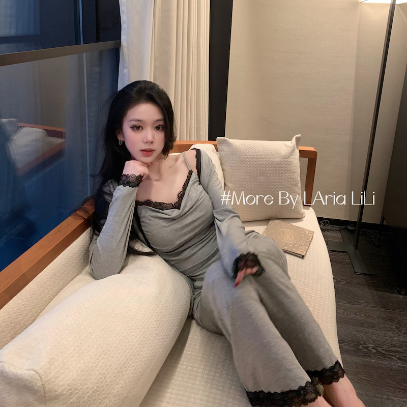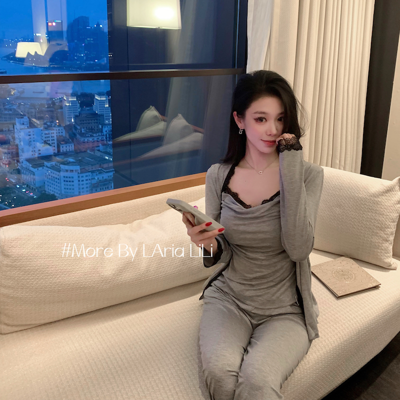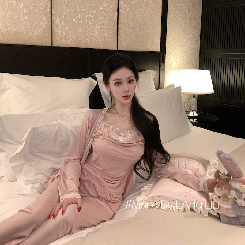 LA*欲系吊带三件套 性感睡衣女春秋款2025新款高级感家居服带胸垫