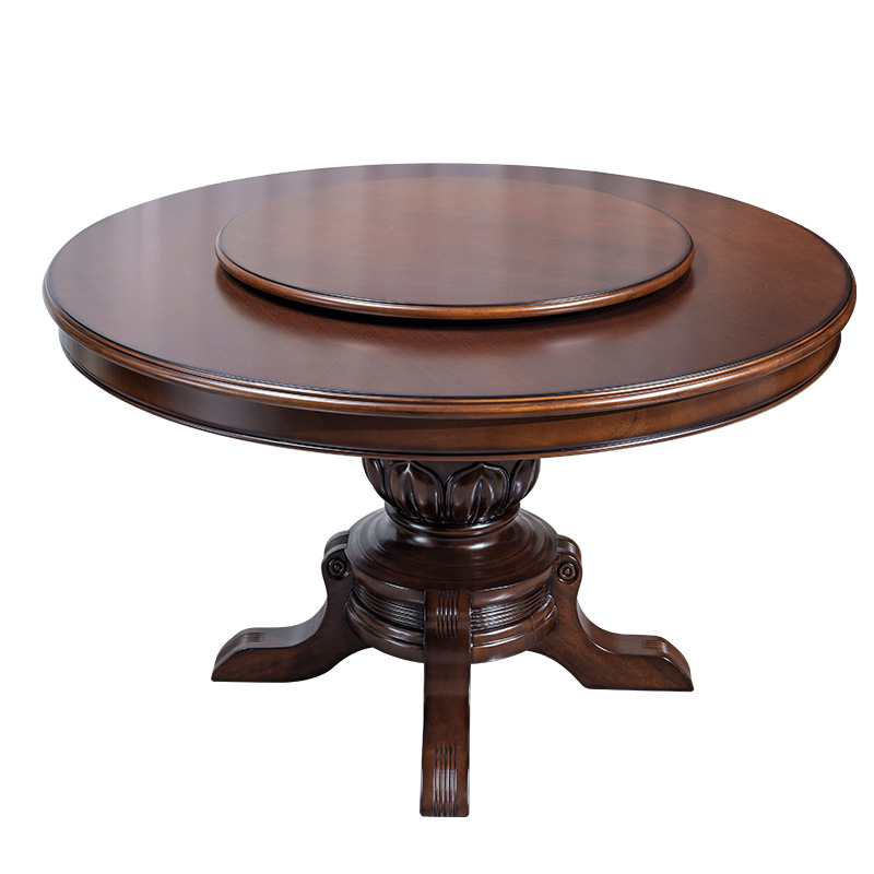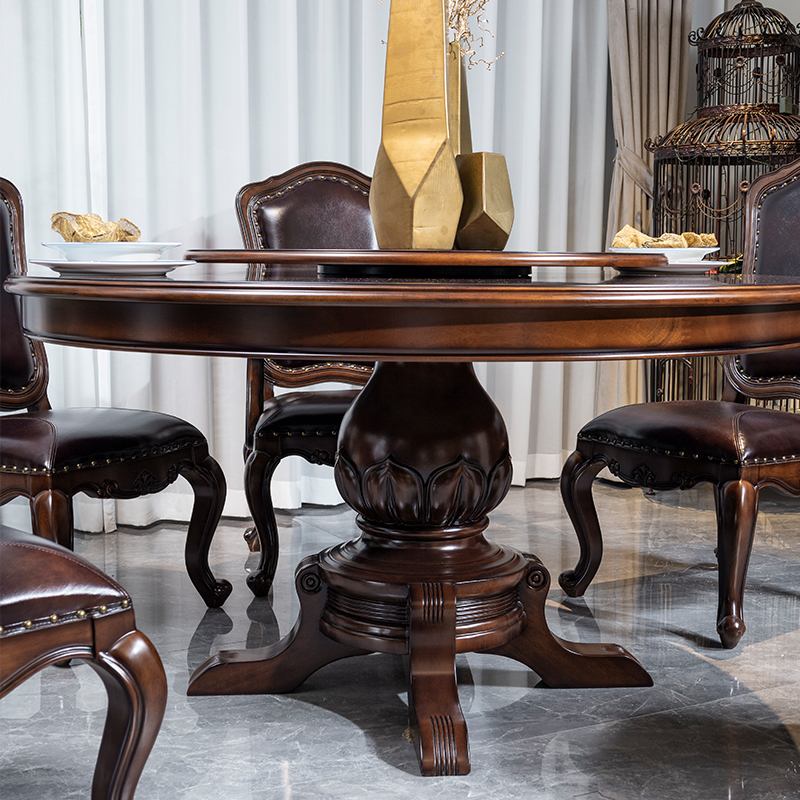 美式乡村实木餐桌椅组合家用欧式大餐桌圆形转盘胡桃木吃饭桌子