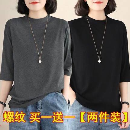 单/两件夏季新款半袖t恤女宽松大码五分袖打底衫百搭显瘦中袖上衣