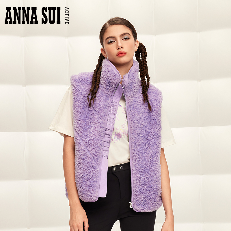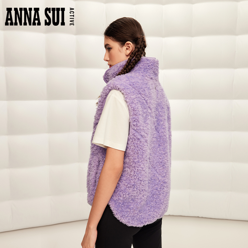 ANNA SUI安娜苏运动 经典安娜系列 仿泰迪卷毛立领马甲背心女