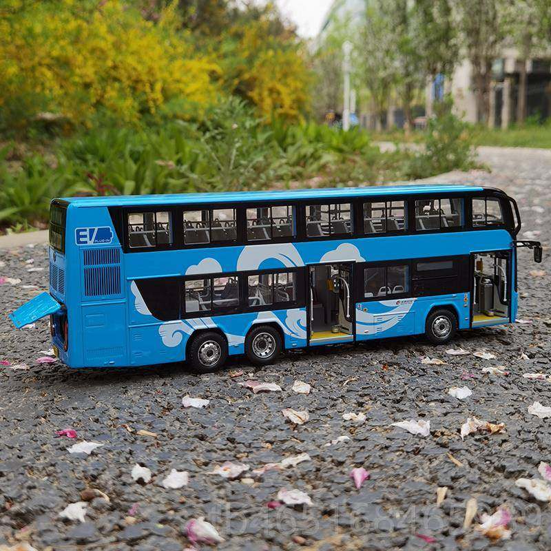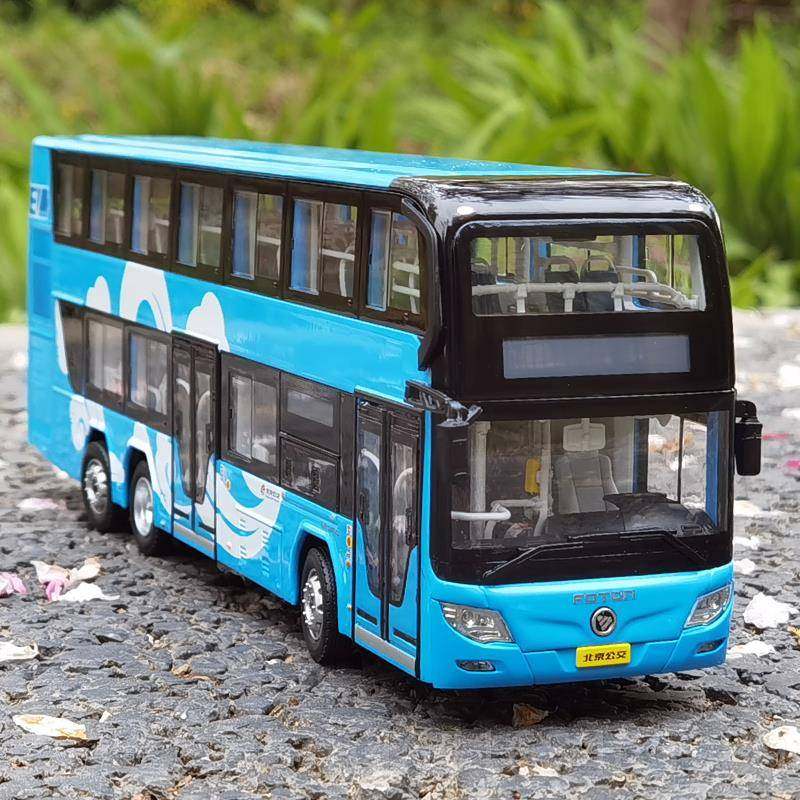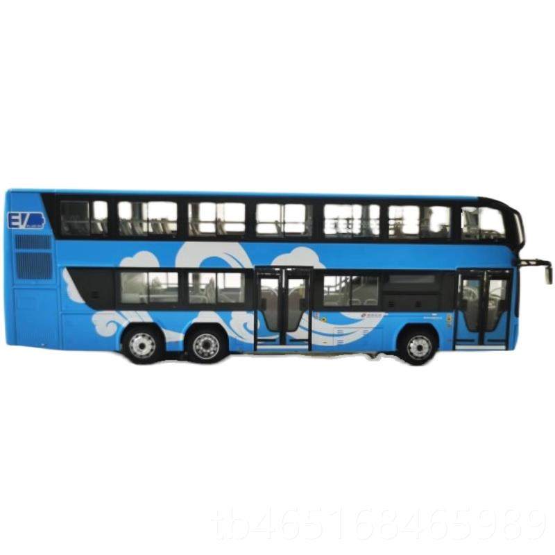 高档北公交车模型 1/43 北汽新能福田京欧辉客双层巴源士祥车云蓝