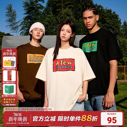 AFGK25SS国潮美式涂鸦印花短袖T恤男女情侣上衣夏季半袖休闲体恤