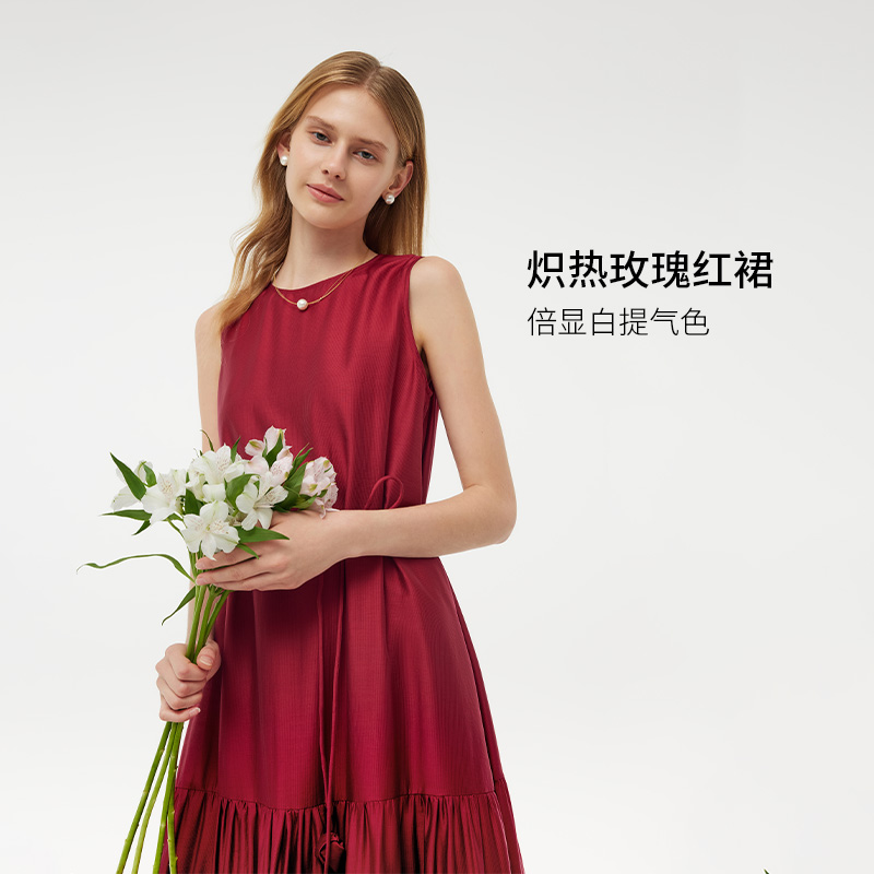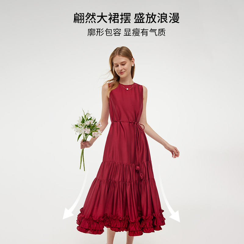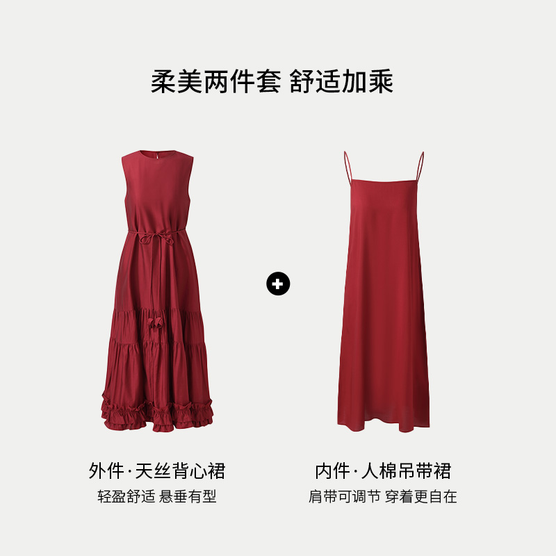 [两件装]歌莉娅红色连衣裙女夏2025重要场合订婚礼服裙无袖背心裙