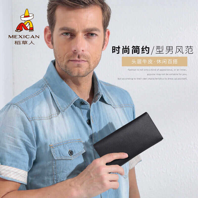 稻草人男士钱包长款真皮头层牛皮皮夹钱夹男竖款钱包商务青年日韩