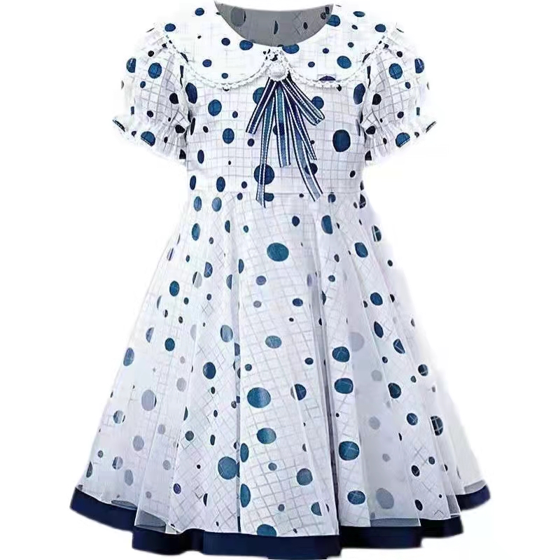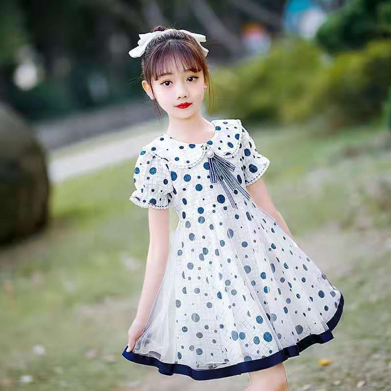 女童连衣裙夏装新款洋气女孩裙子花边圆点儿童韩版粉色波点公主裙
