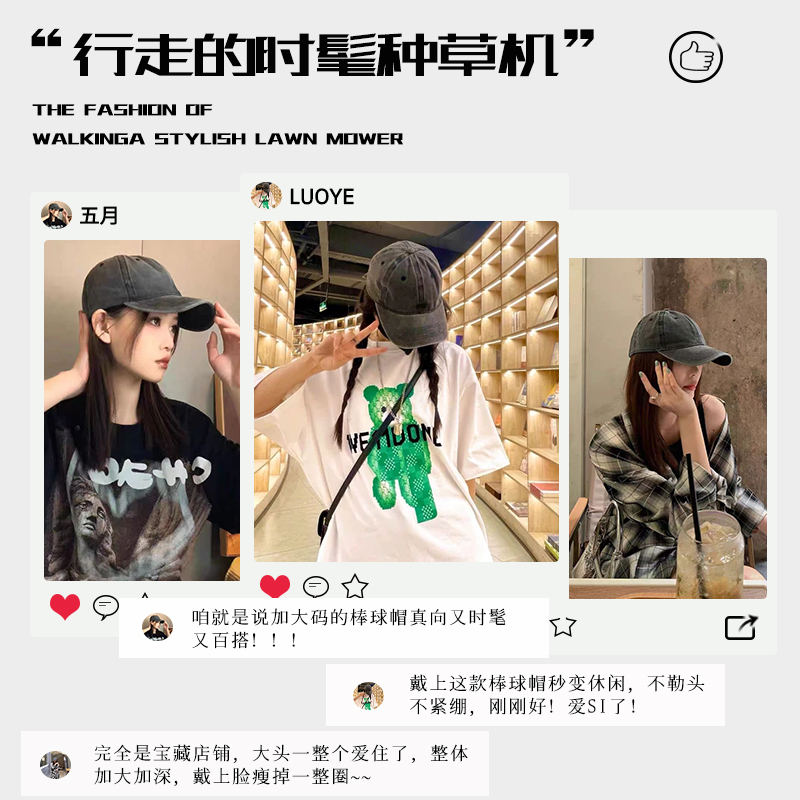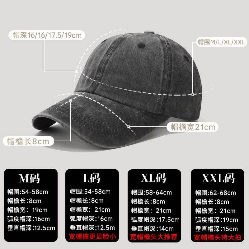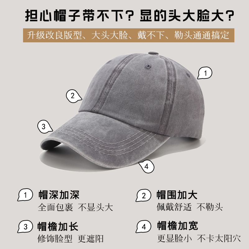 大头围加宽帽檐鸭舌帽女复古做旧水洗牛仔帽加大码显脸小棒球帽男