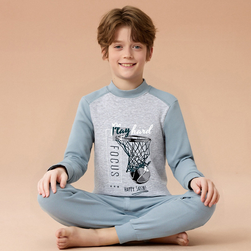 猫人男孩大童半高领秋衣秋裤全纯棉打底棉毛衫青少年儿童内衣套装