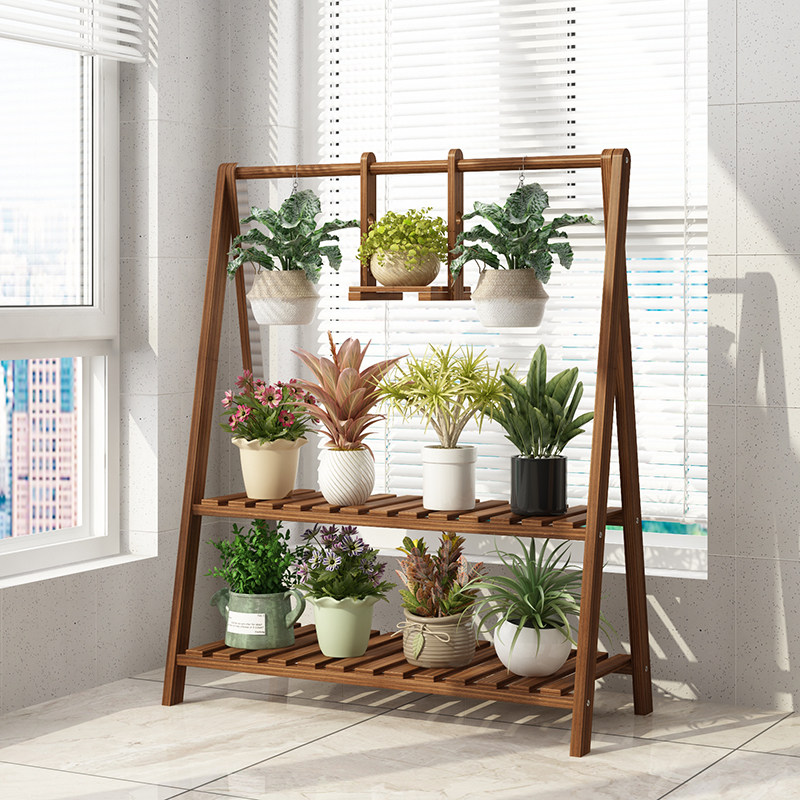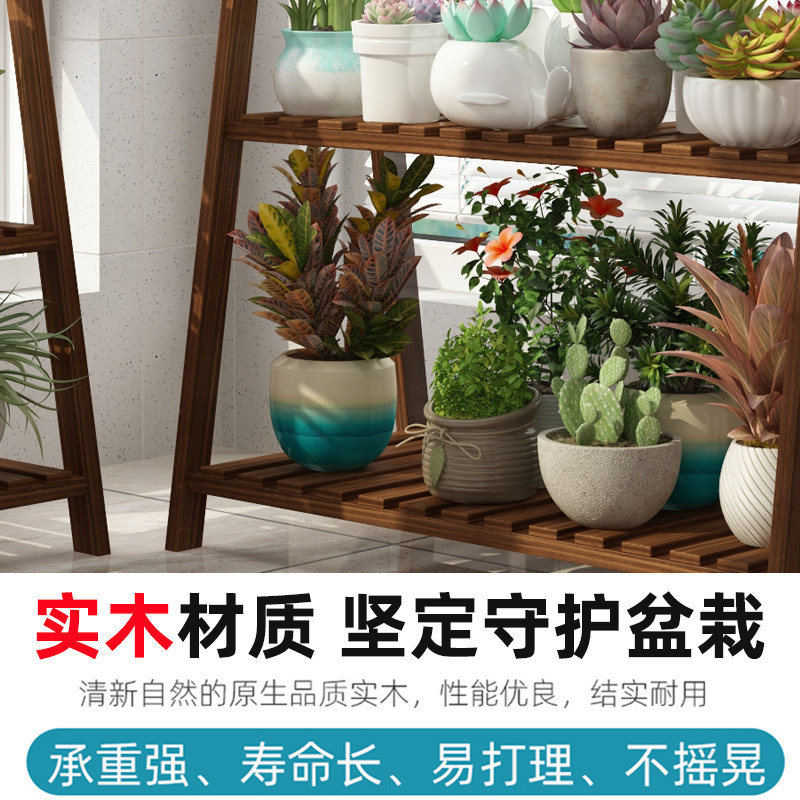 悬挂实木花架子多层室内多肉盆栽架客厅阳台置物架落地田园式户外